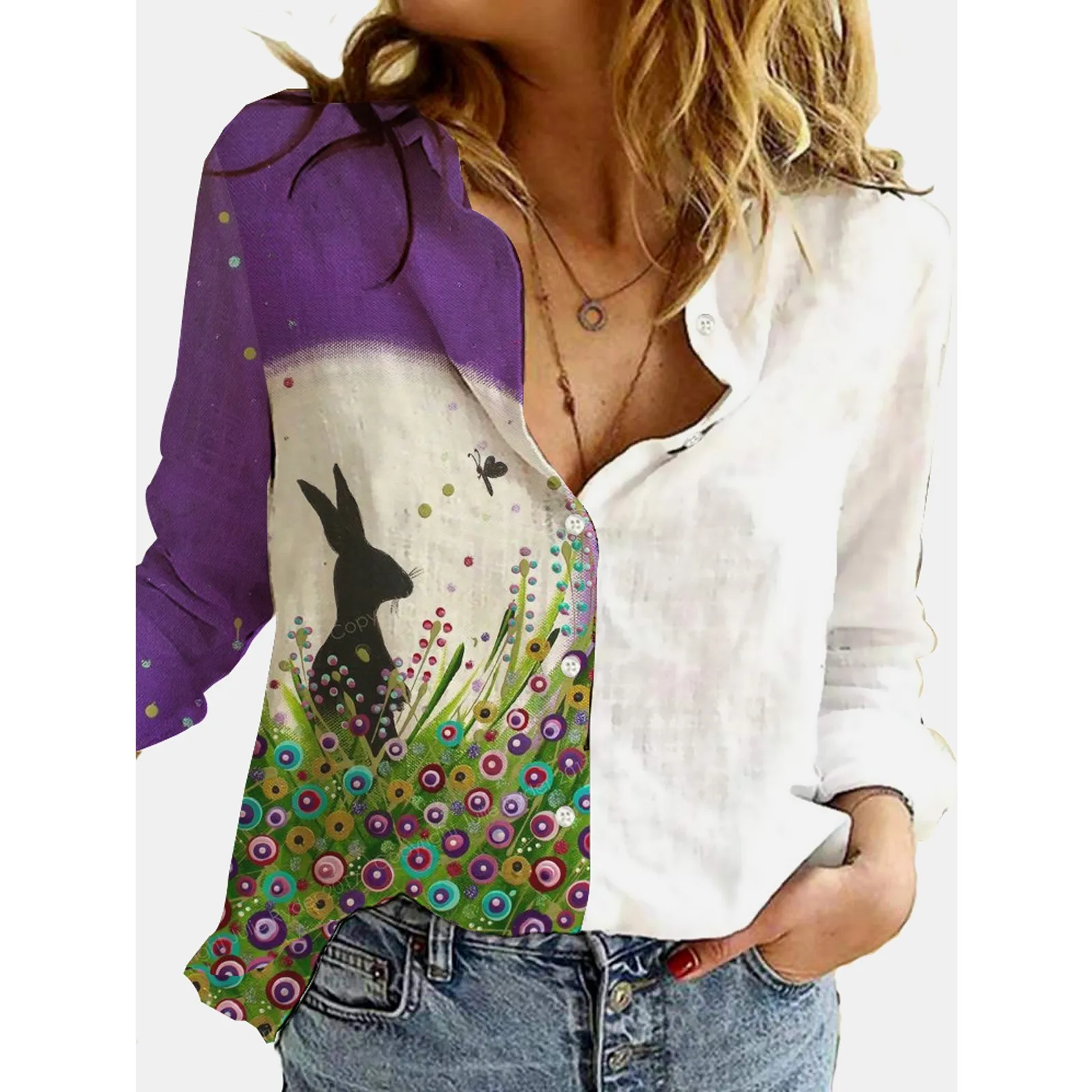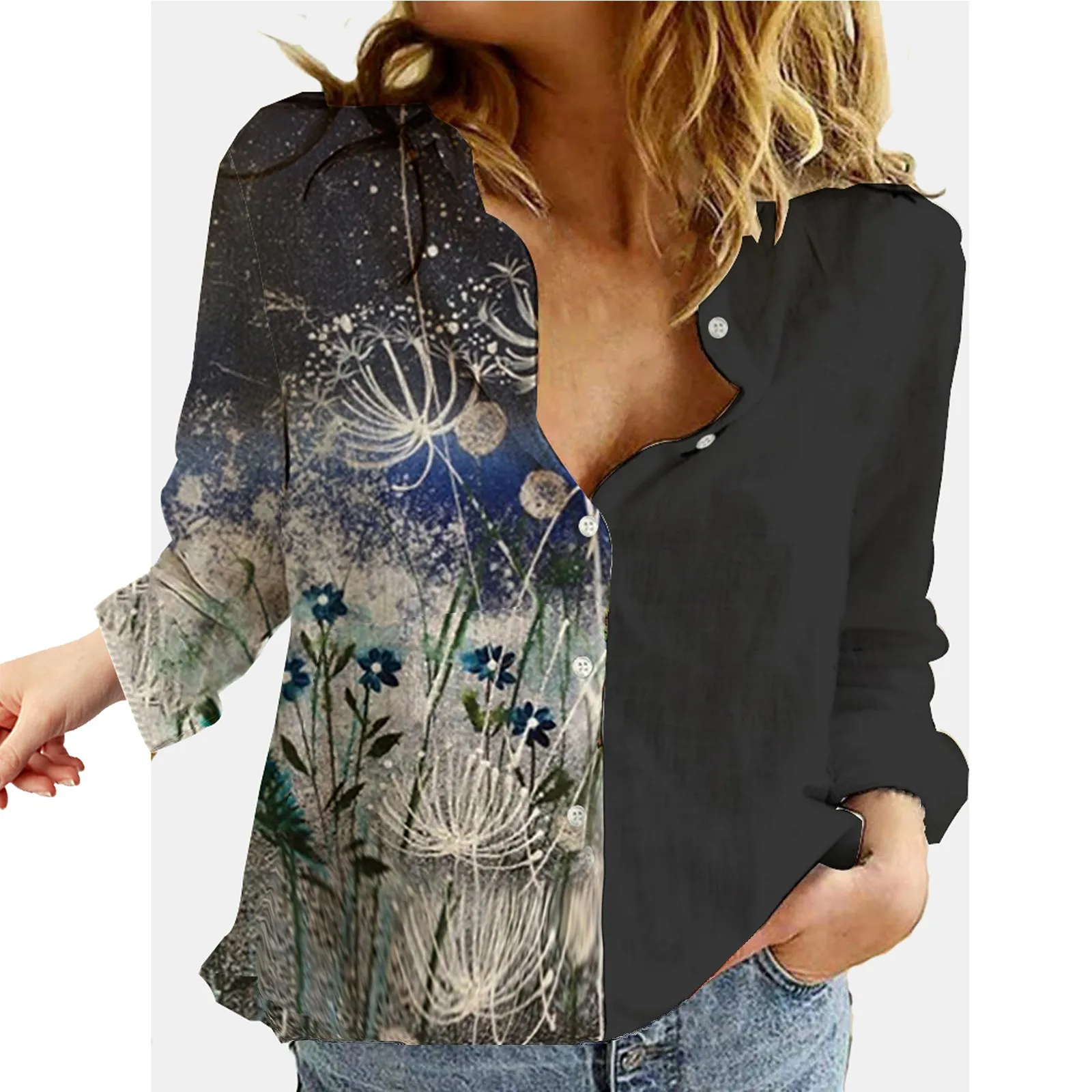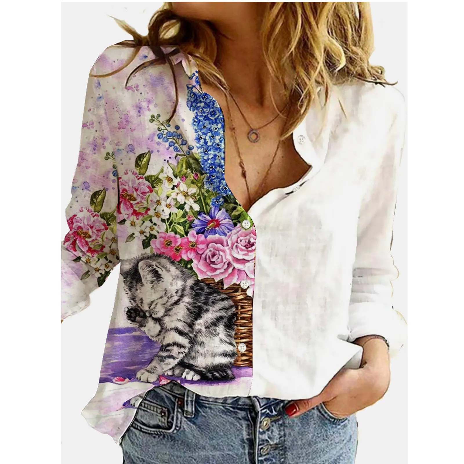 Женская Повседневная Блузка с отложным воротником, винтажная Свободная блузка с цветным принтом, Офисная рубашка с длинным рукавом, Топ, 4 #