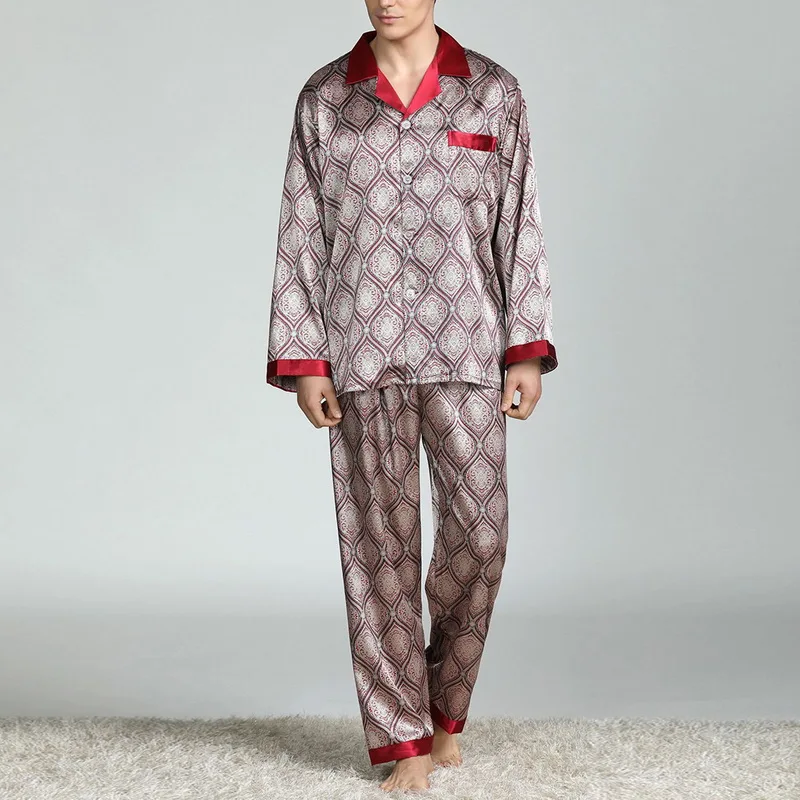 Для мужчин набор пижам для детей на пуговицах, пижама с длинными рукавами, комплект повседневный комплект печатных шелковые пижамы костюм для мальчиков с длинным рукавом размера плюс дома Услуги