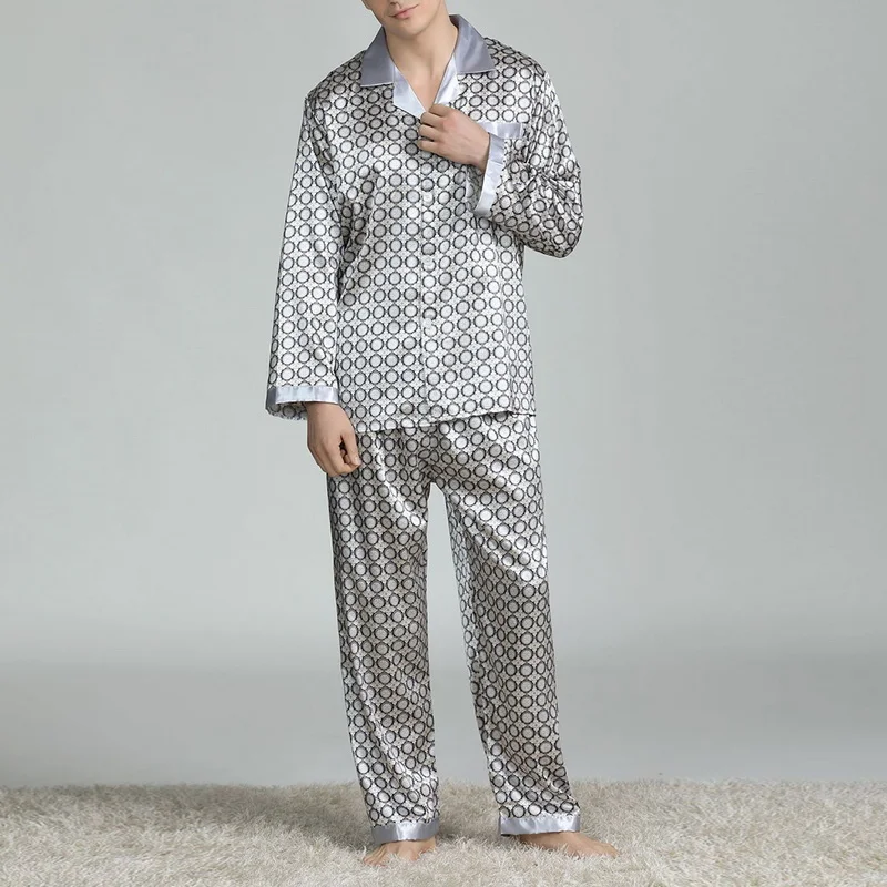 Пижамный комплект Мужской Шелковый атласный, одежда для сна, шелков...