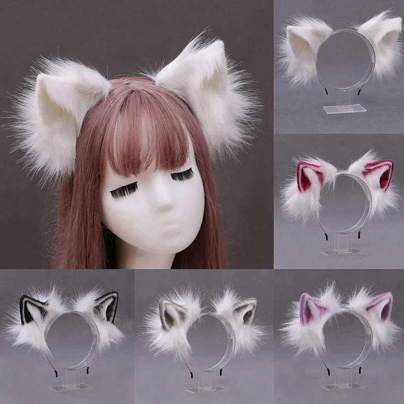 Ободок для волос женский плюшевый, мягкий металлический обруч с ушками животных, лисы, кошачьи ушки, модный аксессуар для волос для косплея