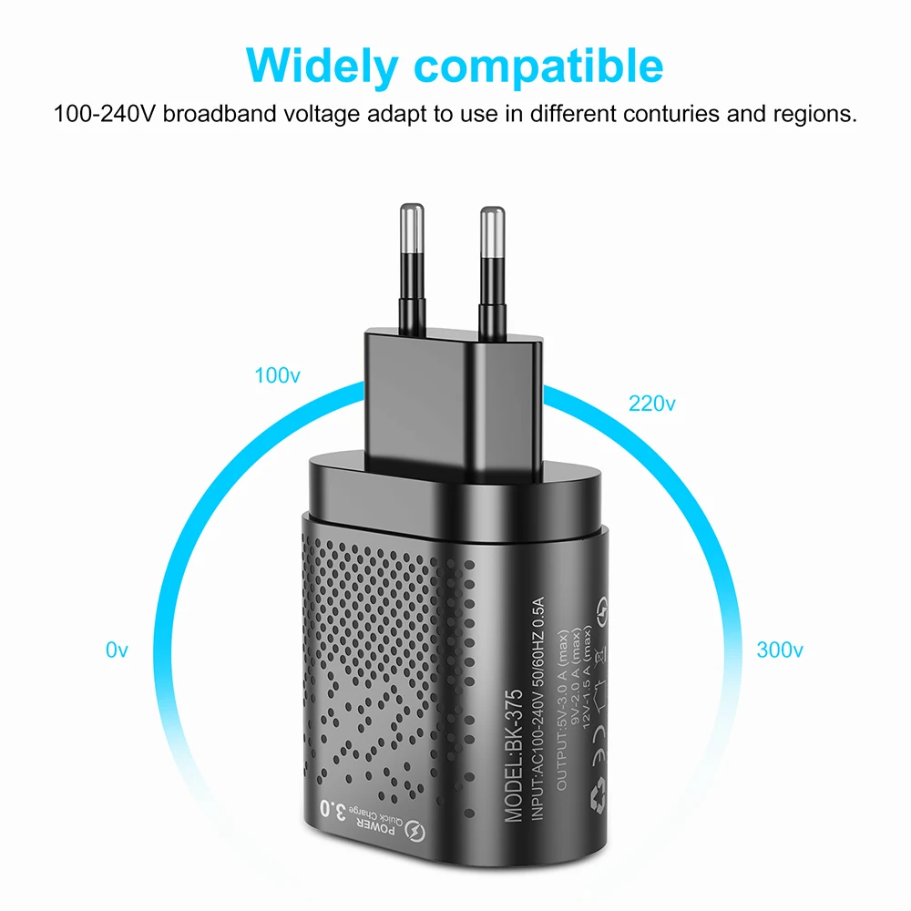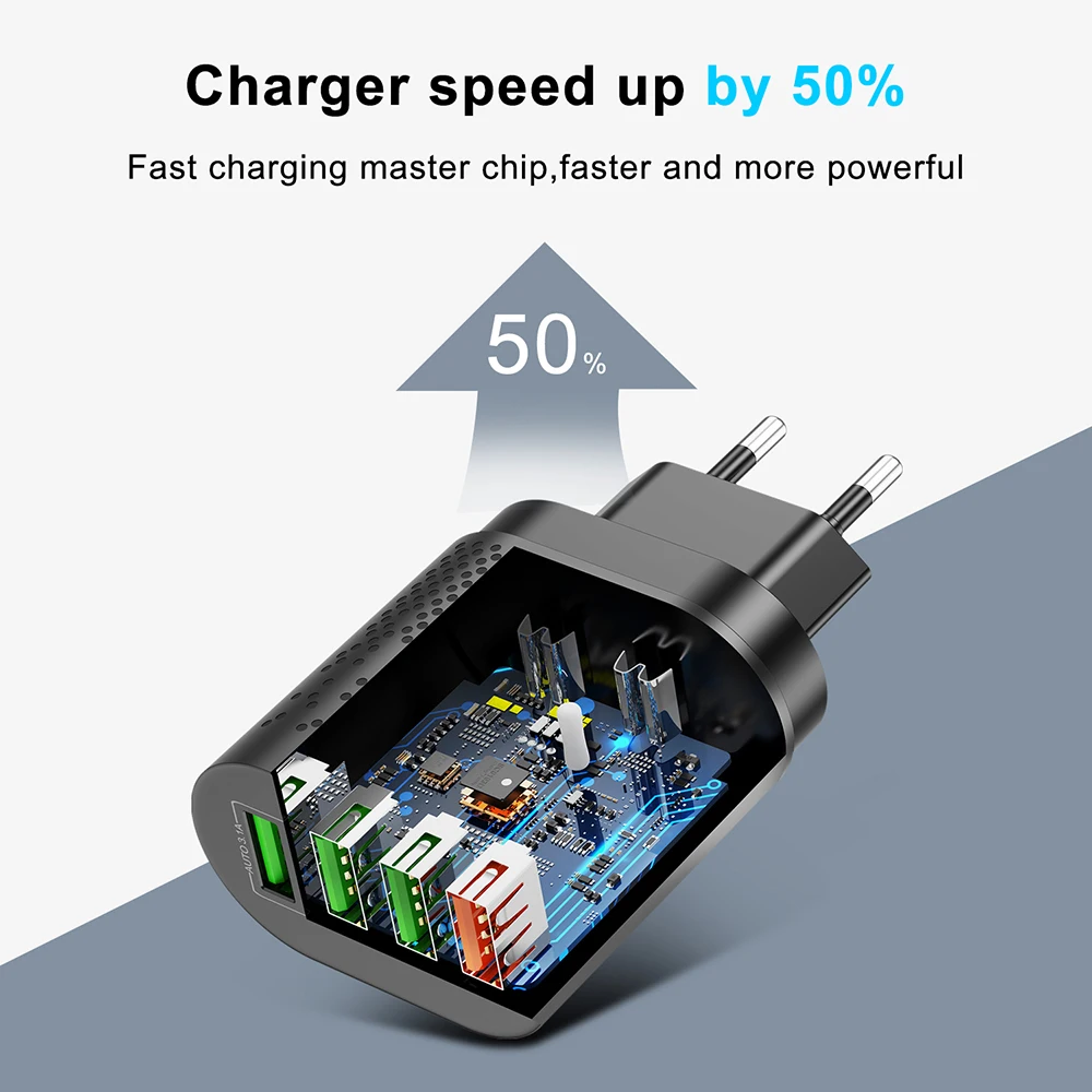 Зарядное устройство FLOVEME USB 48 Вт для ЕССША, быстрая зарядка 3,0 Для iPhone 12, 11, 3A, зарядное устройство для Xiaomi Мобильный телефон