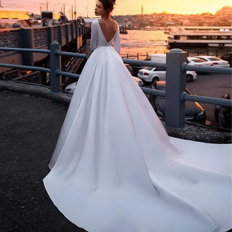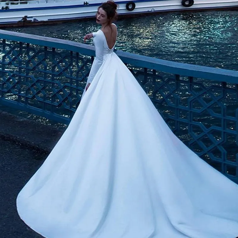 Женское атласное свадебное платье It's yiiya, белое винтажное платье с длинным рукавом и открытой спиной на лето 2022