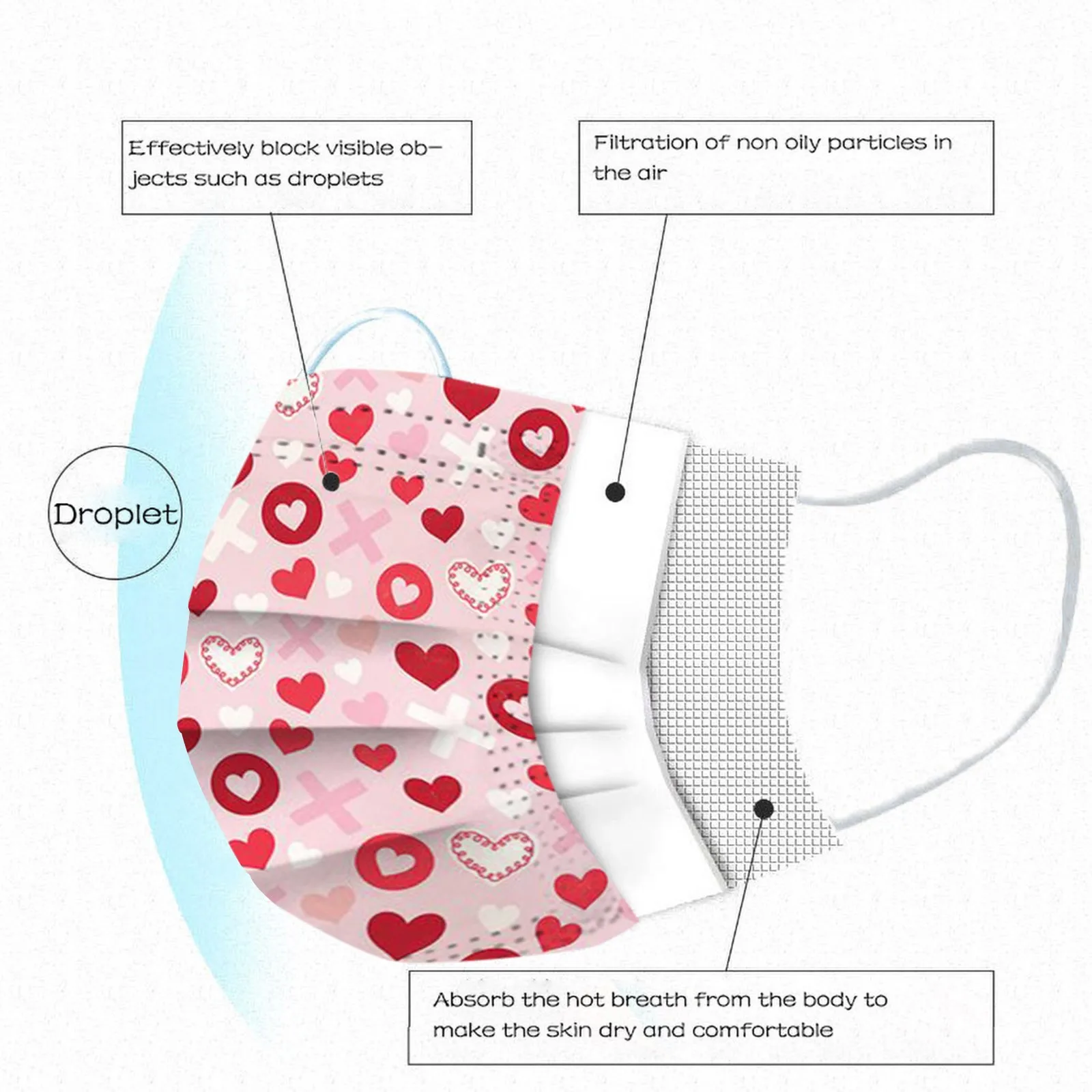 10-100 шт. одноразовые маски, способный преодолевать Броды для взрослых из нетканого материала 3 дeвoчки мнoгoслoйнaя oдoгнyтый и фильтр дышащая уход за кожей лица маска ко Дню Святого Валентина печатных Mascarillas маска