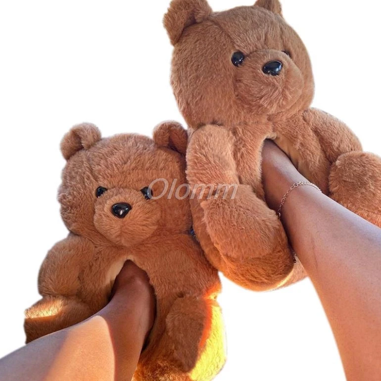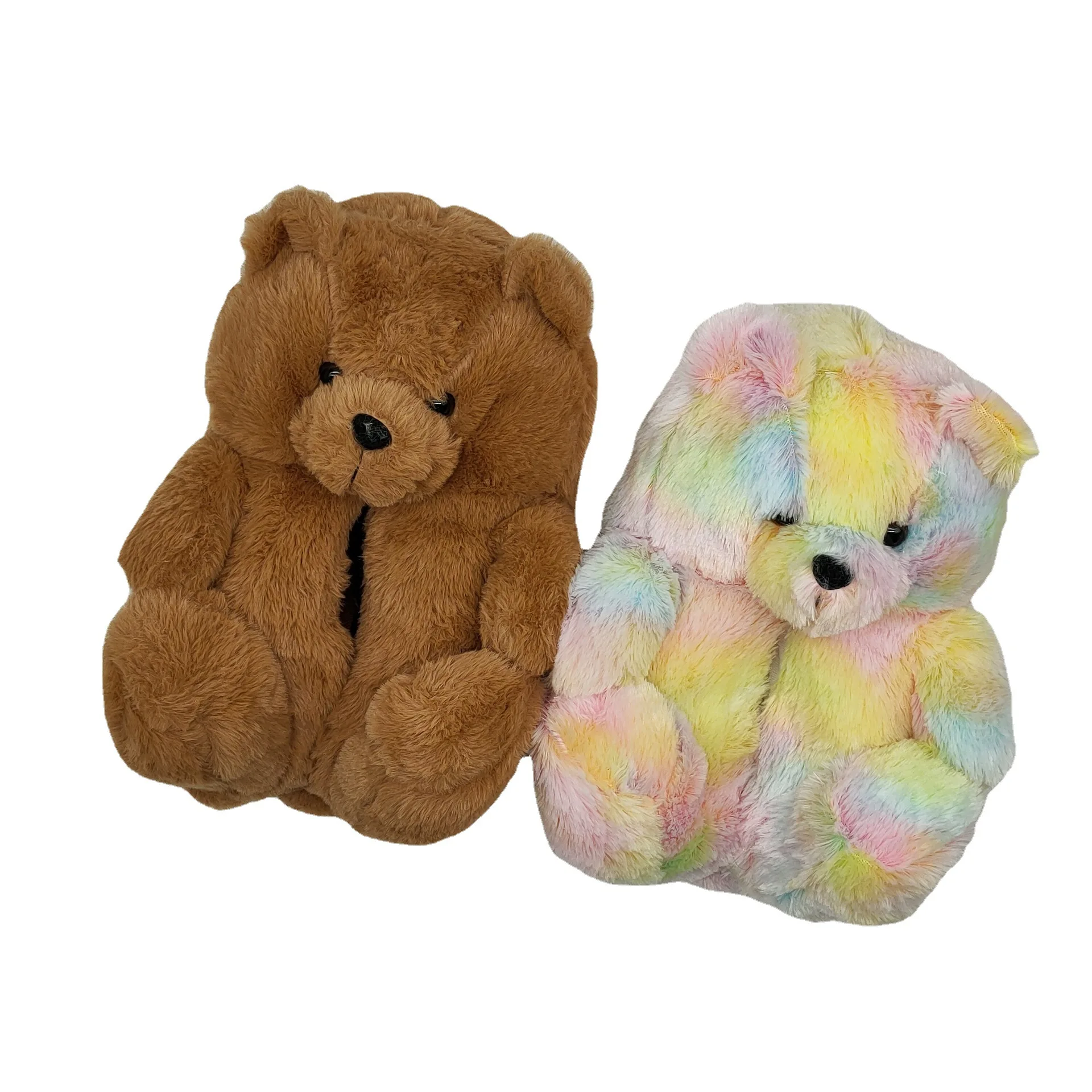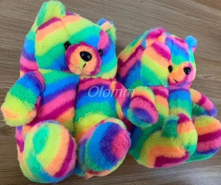 Плюшевый медведь Милая Радуга мультфильм Медведь домашние тапочки Нескользящие бесшумные мягкие теплые зимние осенние толстые горячая распродажа
