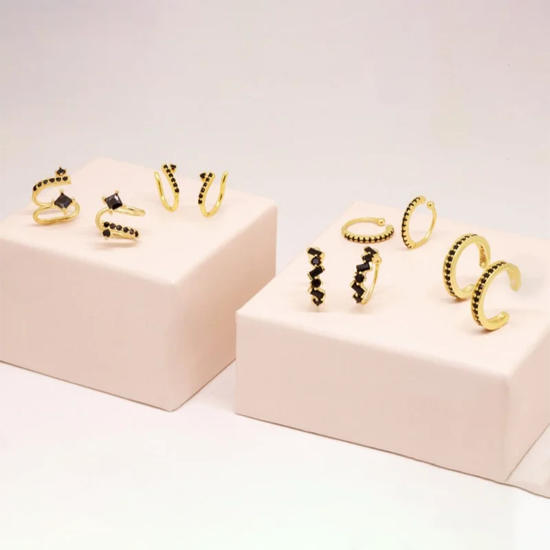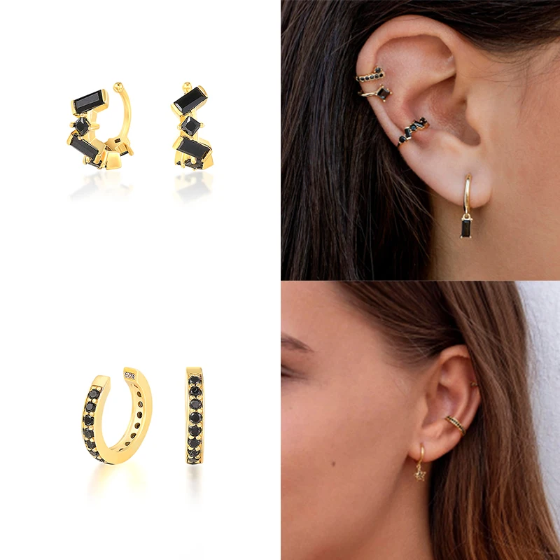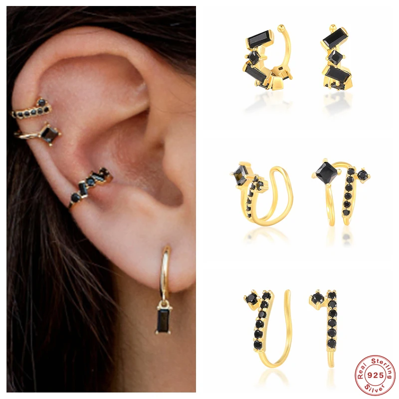 BOAKO 925 Стерлинговое серебро черный кубический цирконий драгоценный Кафф для женщин двойной Слои алмаз АРК линия клип серьги, хорошее ювелирное изделие