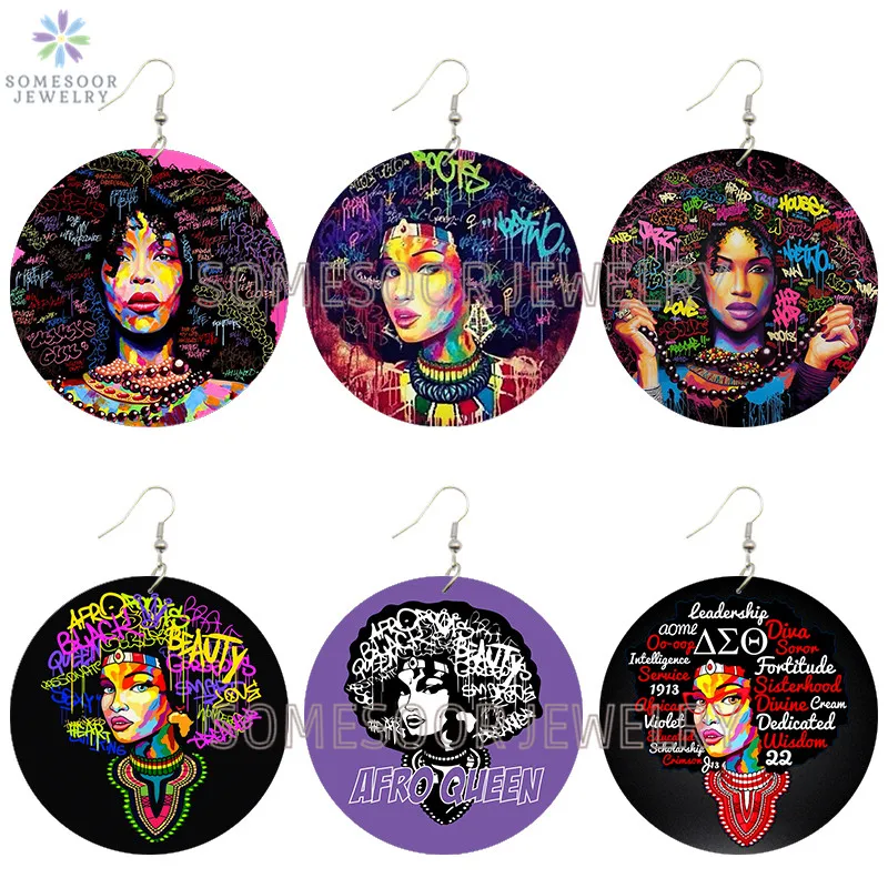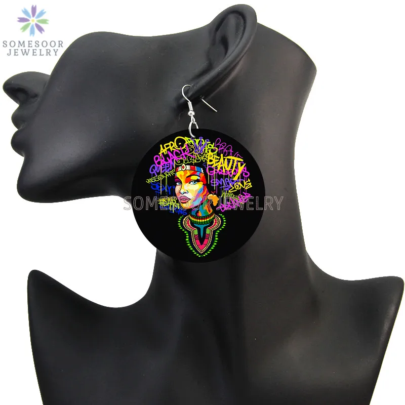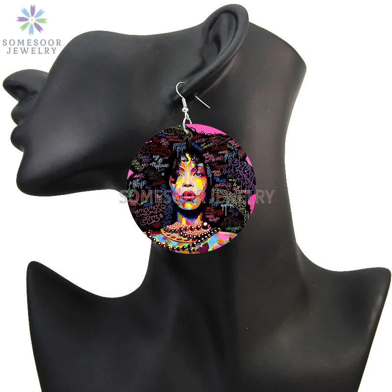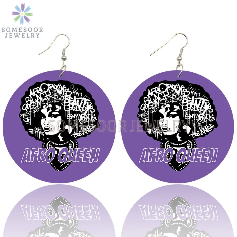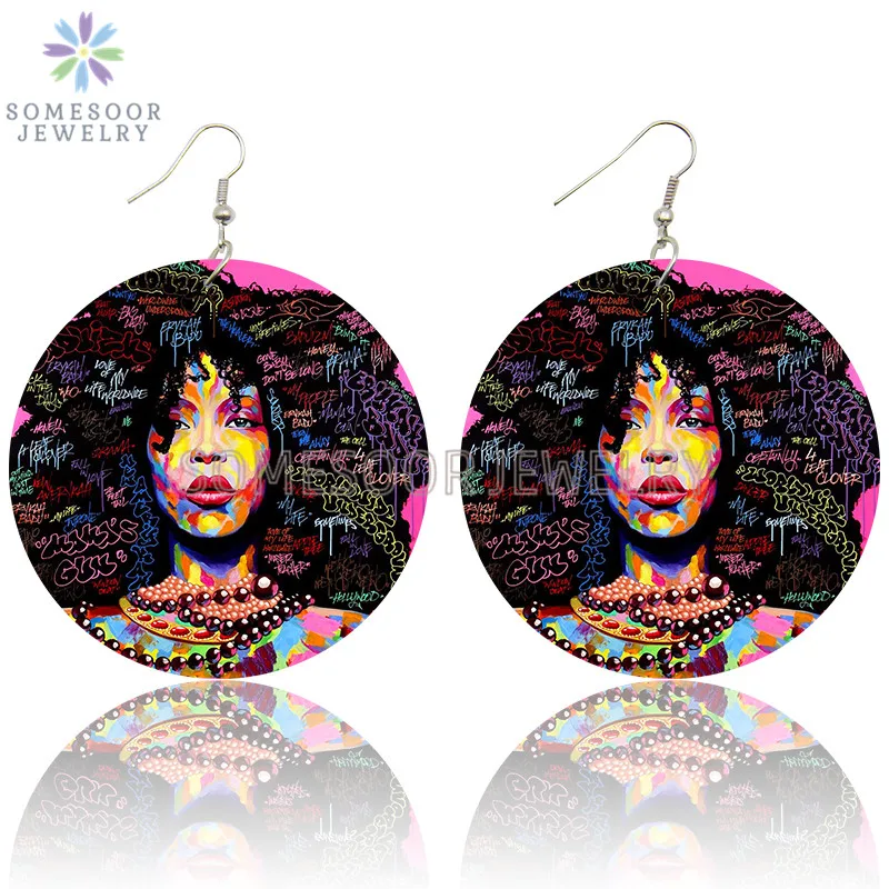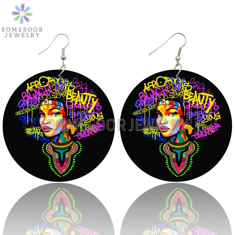 SOMESOOR африканская кудрявая королева, африканская Дива, деревянные серьги-подвески, черные высказывания, печатные петли, Висячие ювелирные изделия для женщин, подарки