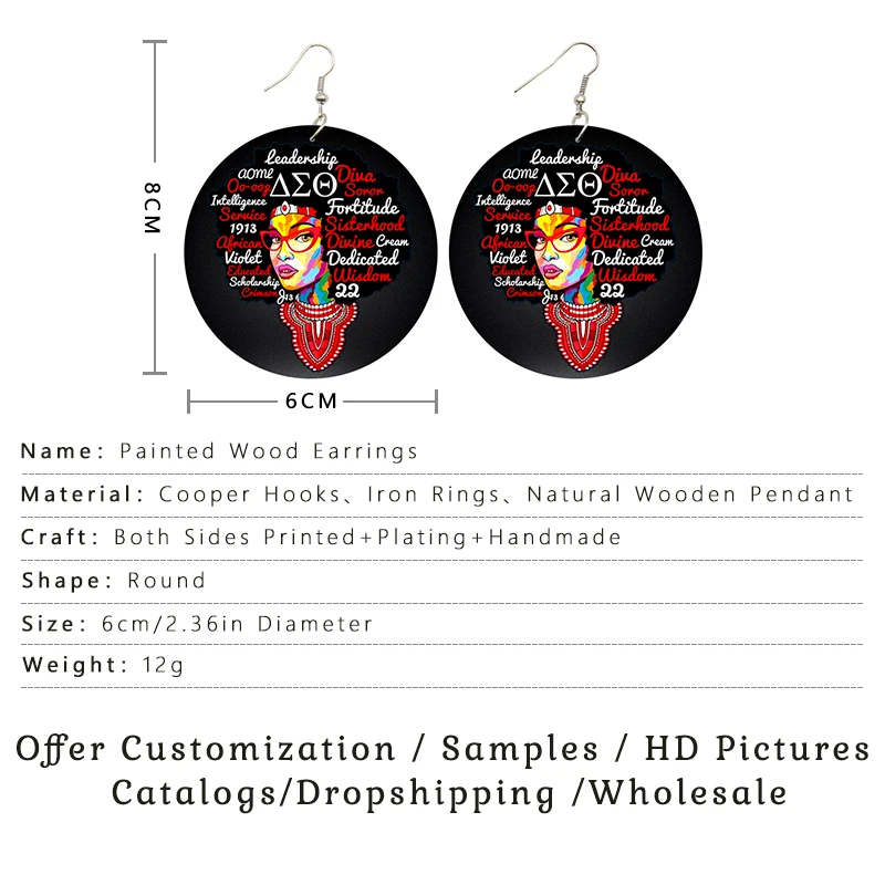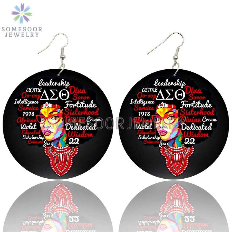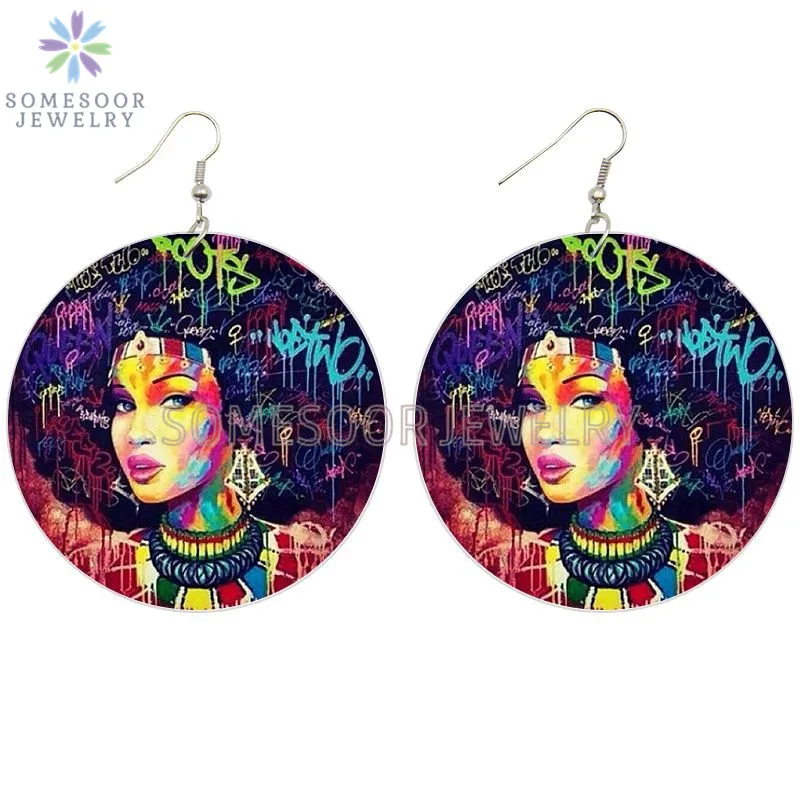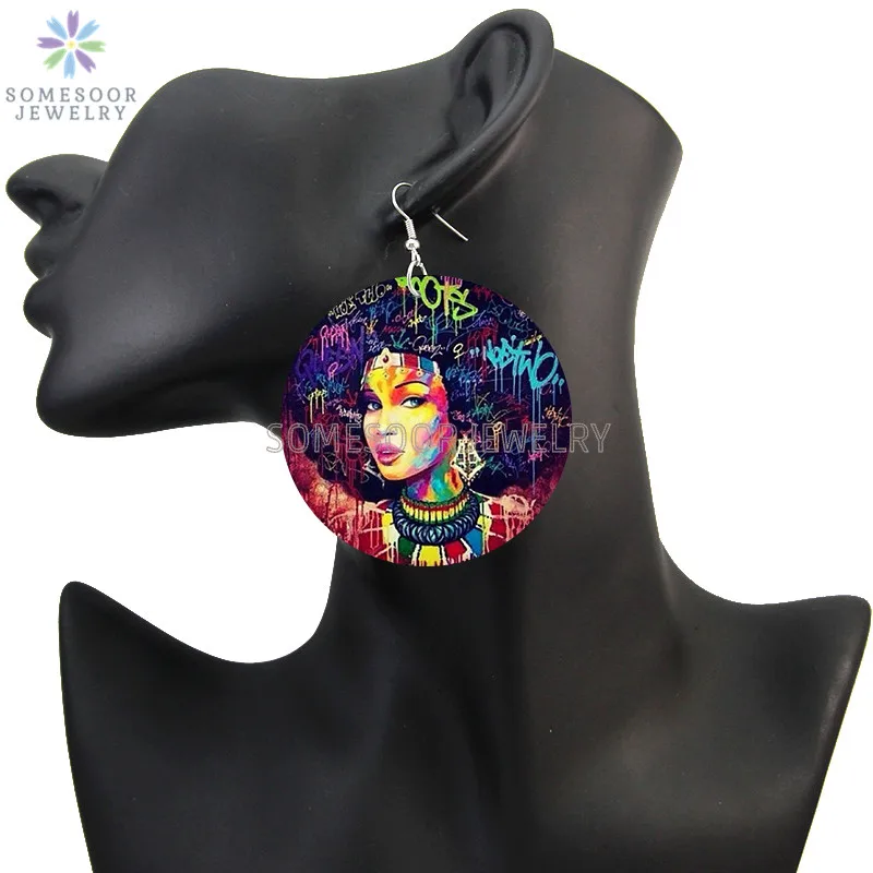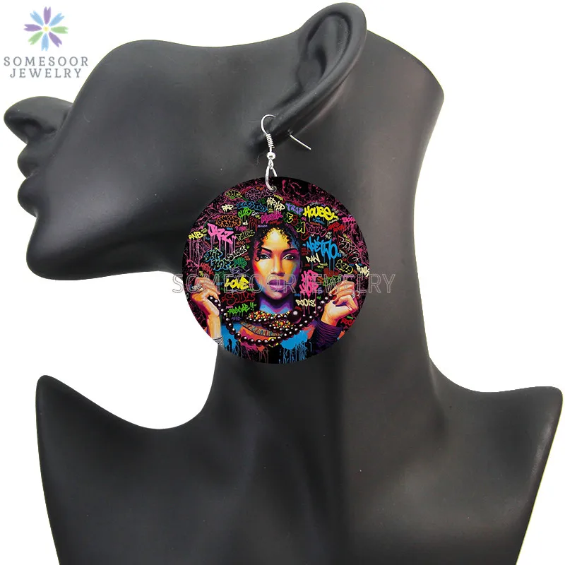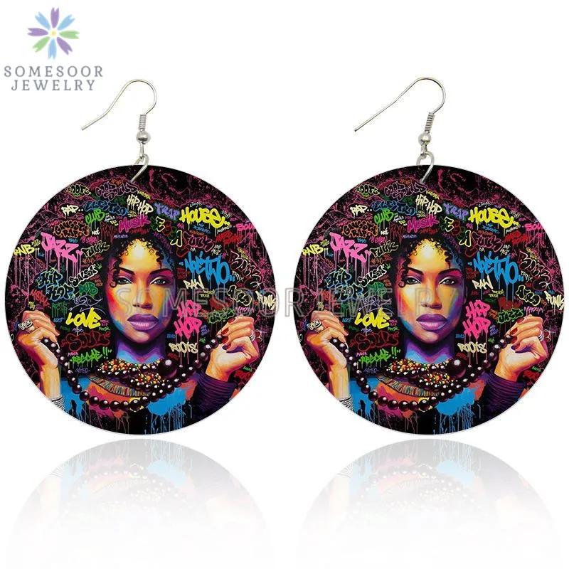 SOMESOOR африканская кудрявая королева, африканская Дива, деревянные серьги-подвески, черные высказывания, печатные петли, Висячие ювелирные изделия для женщин, подарки