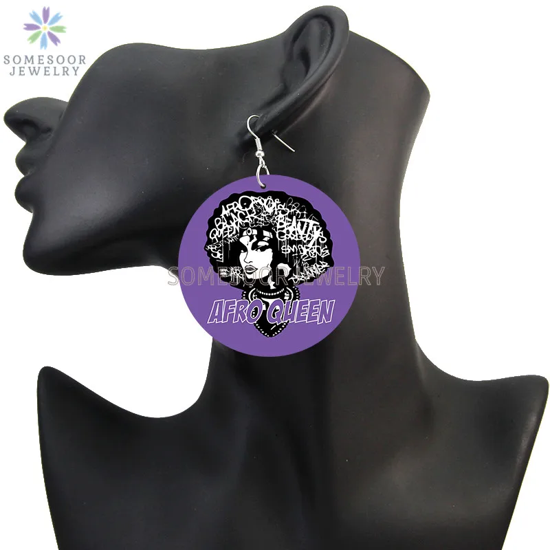 SOMESOOR меланин поппин королева вьющиеся деревянные висячие серьги...