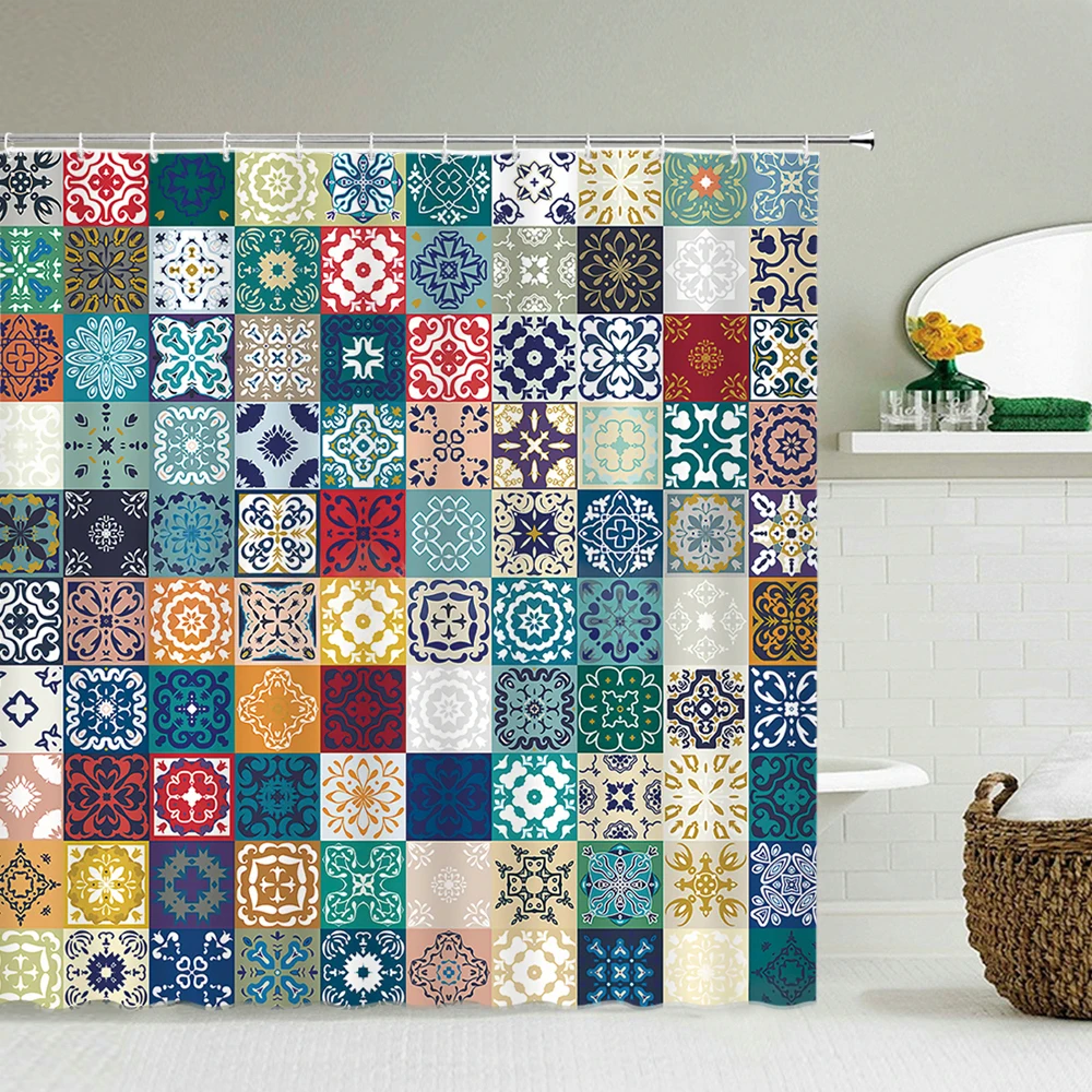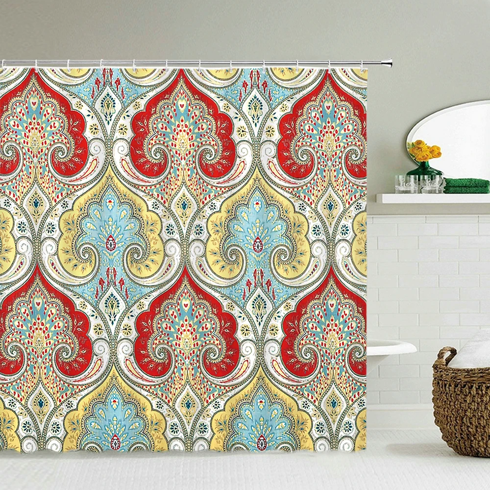 Занавеска для душа в индийском богемном стиле, занавеска для ванной из водонепроницаемой ткани с рисунком, большие шторы для ванной 240x180 с крючками