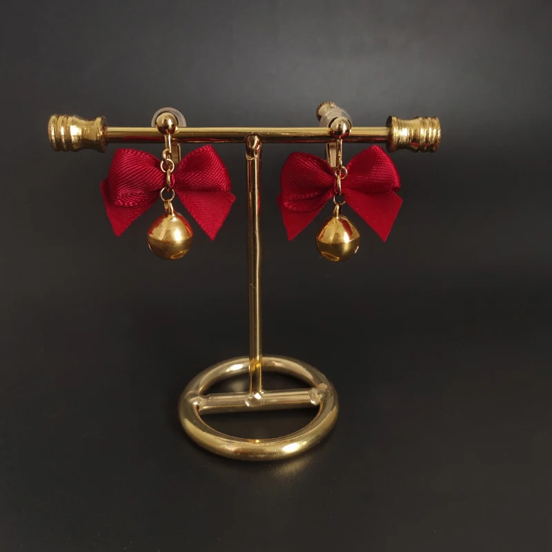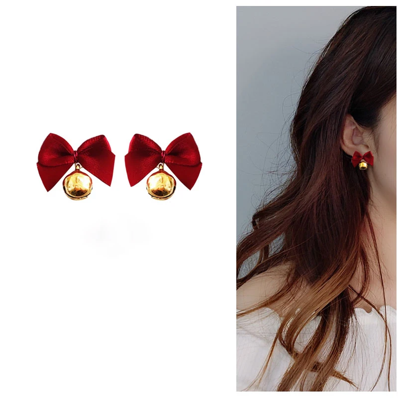 Серебряные рождественские серьги с красным бантом, милые серьги для девочек, серьги-гвоздики, крючки для ушей, винтовой зажим, без ушной петли