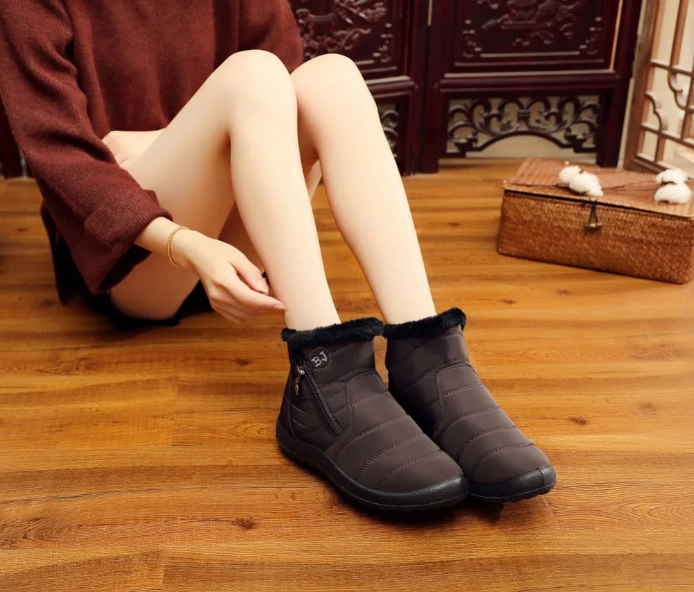 Женские теплые плюшевые ботинки, мягкая удобная женская обувь, водонепроницаемая прочная женская обувь, женские ботинки на молнии с круглым носком WJ021