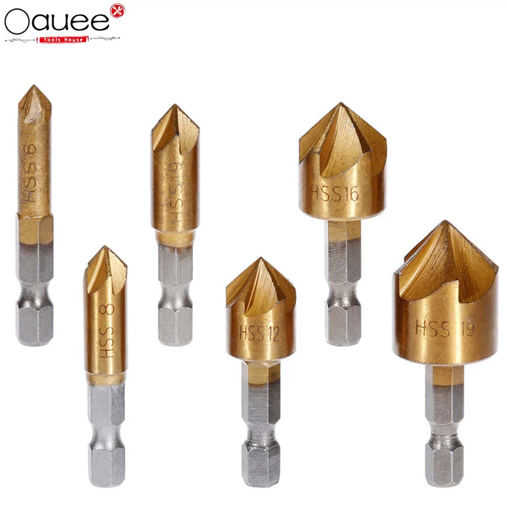 Набор сверл с зенкером, комплект из 36 насадок 14 дюйма, из быстрорежущей стали с шестигранным хвостовиком, 5 бороздок, 90 градусов, для снятия фаски по дереву, 6 мм-19 мм