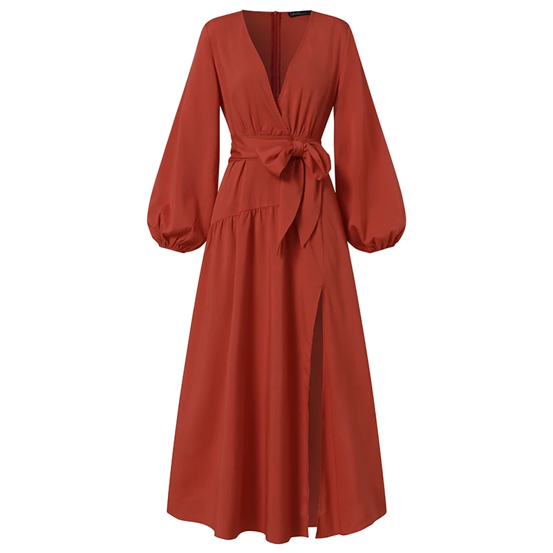 Посылка входит: 1 платьеМатериал: 95% полиэстер + 5% спандексЦвета: черный, оранжевый, зеленыйРазмер: S,M,L,XL,2XL ,,,Длина рукава: полный рукавВырез горловины: v-образный вырезРисунок: однотонныйДлина: до щиколоткиЦепочка с пряжкой: с молнией сзадиТолщина: тонкаяУкрашение: шнуровкаОсобенности: высокий разрез, эластичный манжетСтиль: Досуг, богемный, ретро, Европа, мода, сексуальный, литератураСезон: весна, лето, осень, зимаПовод: семья вечерние, пляж, свадьба, праздник, Повседневный, путешествия