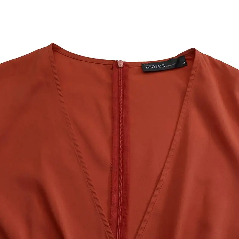 Платье ZANZEA женское с глубоким V-образным вырезом, длинный Повседневный пляжный сарафан в богемном стиле с длинным рукавом, вечерняя одежда с разрезом, весна 2021
