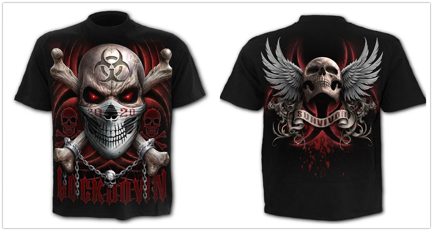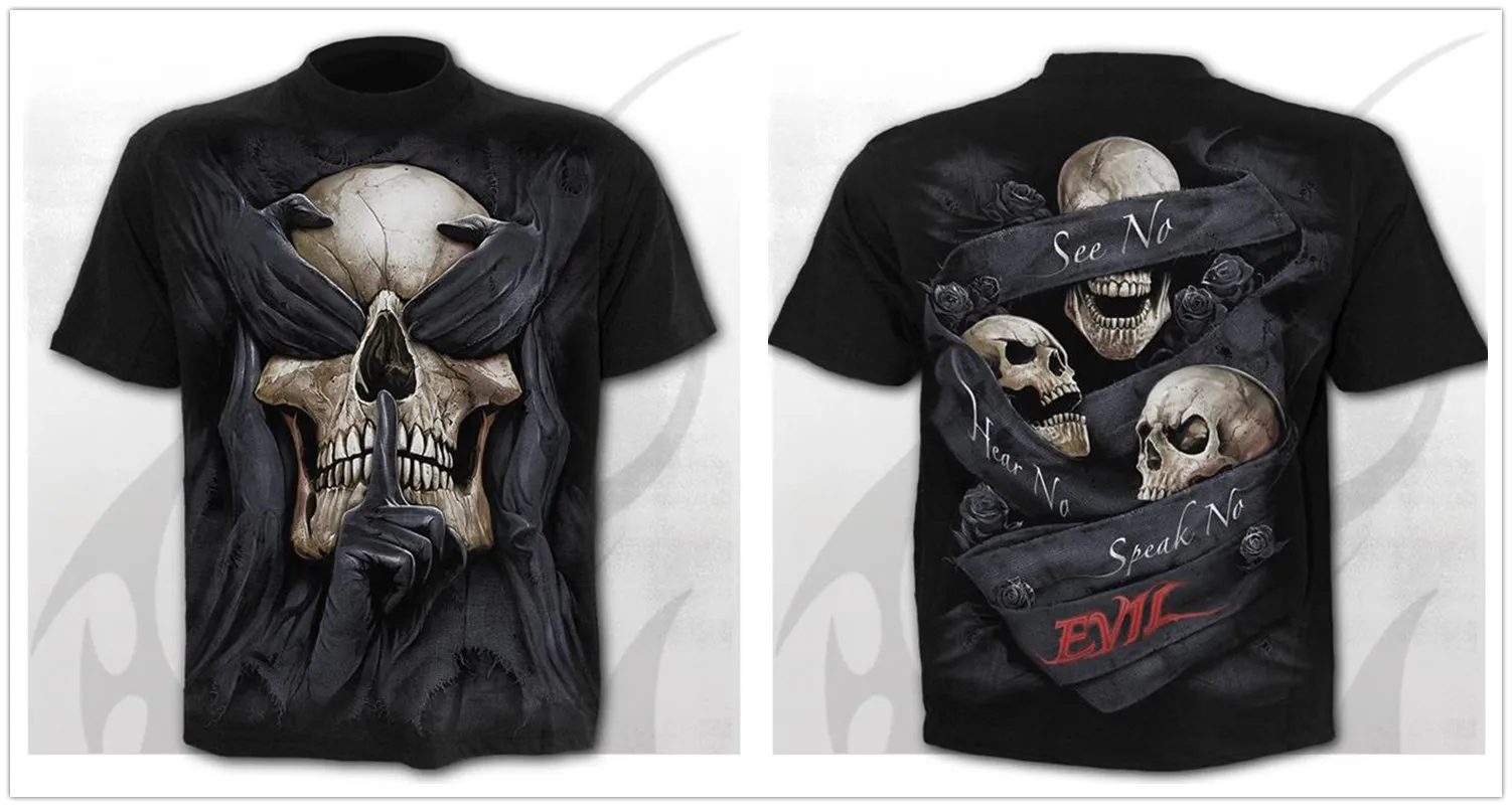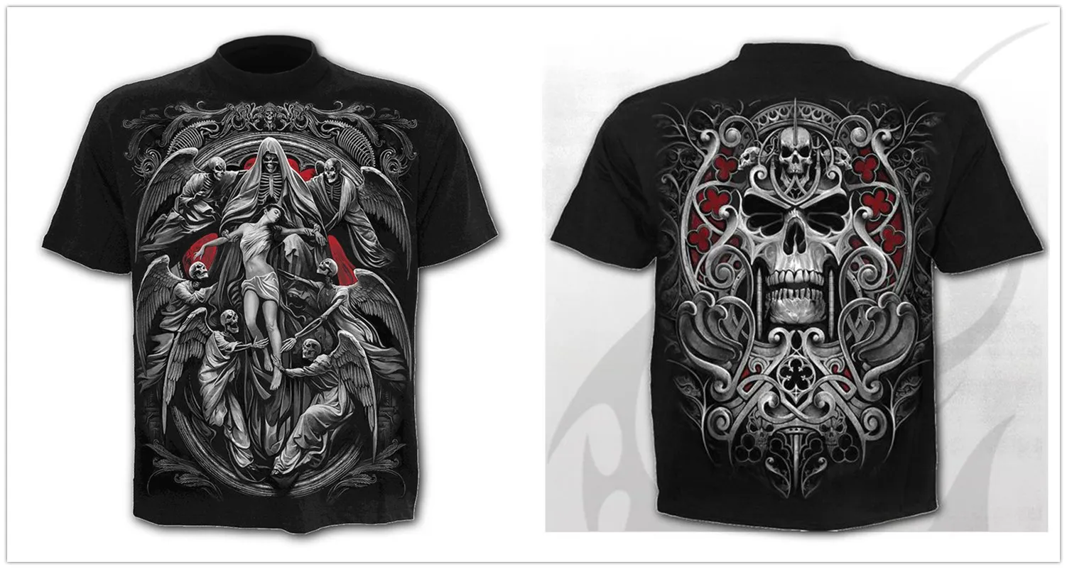 Жутким черепом Футболка мужская 3d в стиле панк-рок, рубашка в готи...
