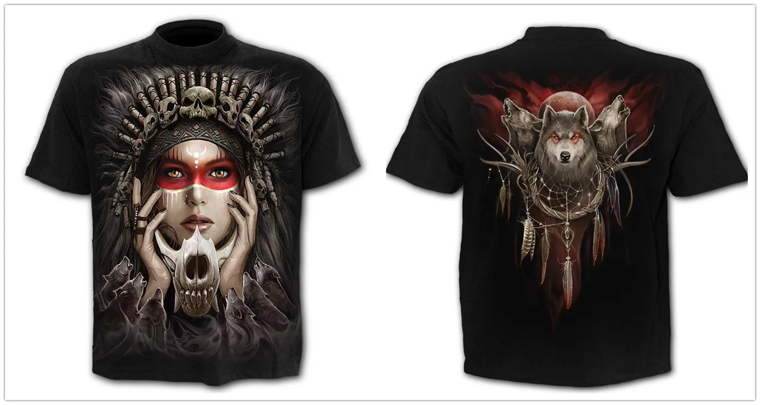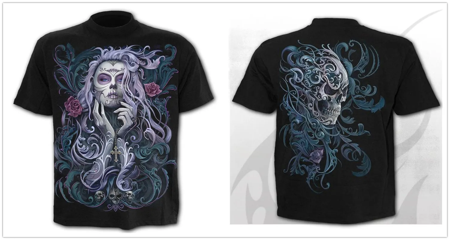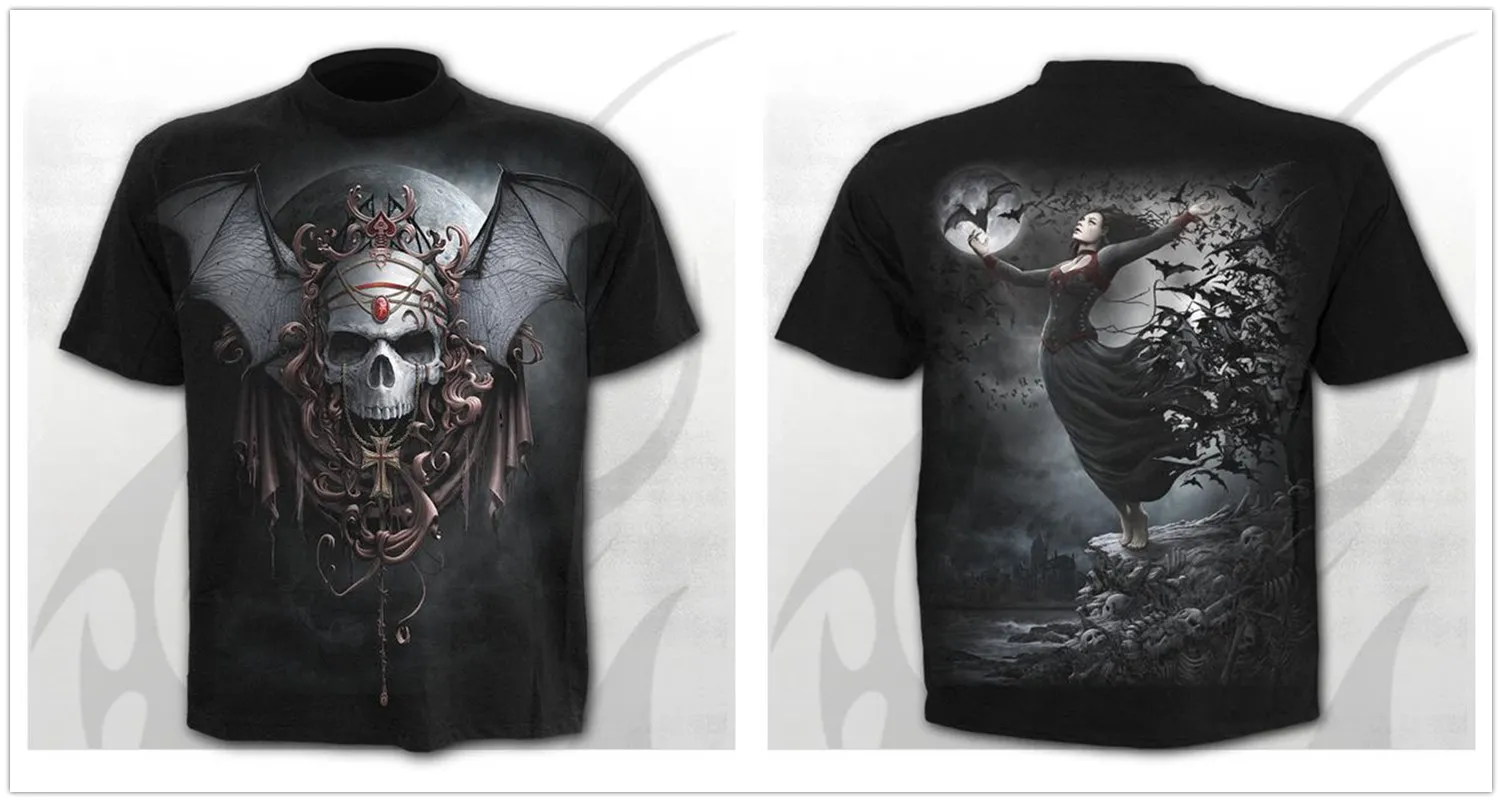 Жутким черепом Футболка мужская 3d в стиле панк-рок, рубашка в готи...