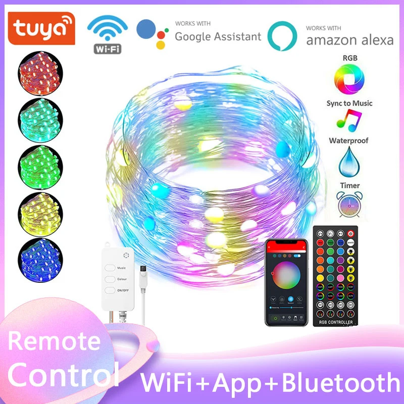 Tuya Smart Wifi светодиодные гирлянды светильник Dreamcolor 10 м 100LED RGB с питанием от USB светильник работать Alexa Google синхронизация музыки App 40key пульт дистанционного управления