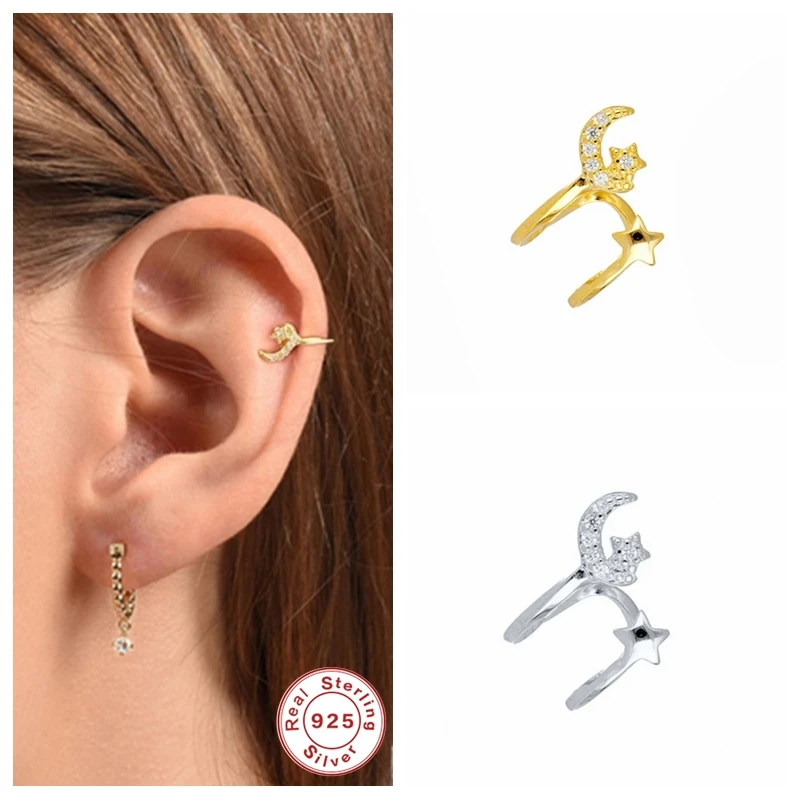 100% 925 пробы серебряные серьги-клипсы для женщин и девушек, заменитель мужчины Кафф с имитацией серьги, Надеваемые На ушной хрящ без пирсинг серьги, ювелирные изделия