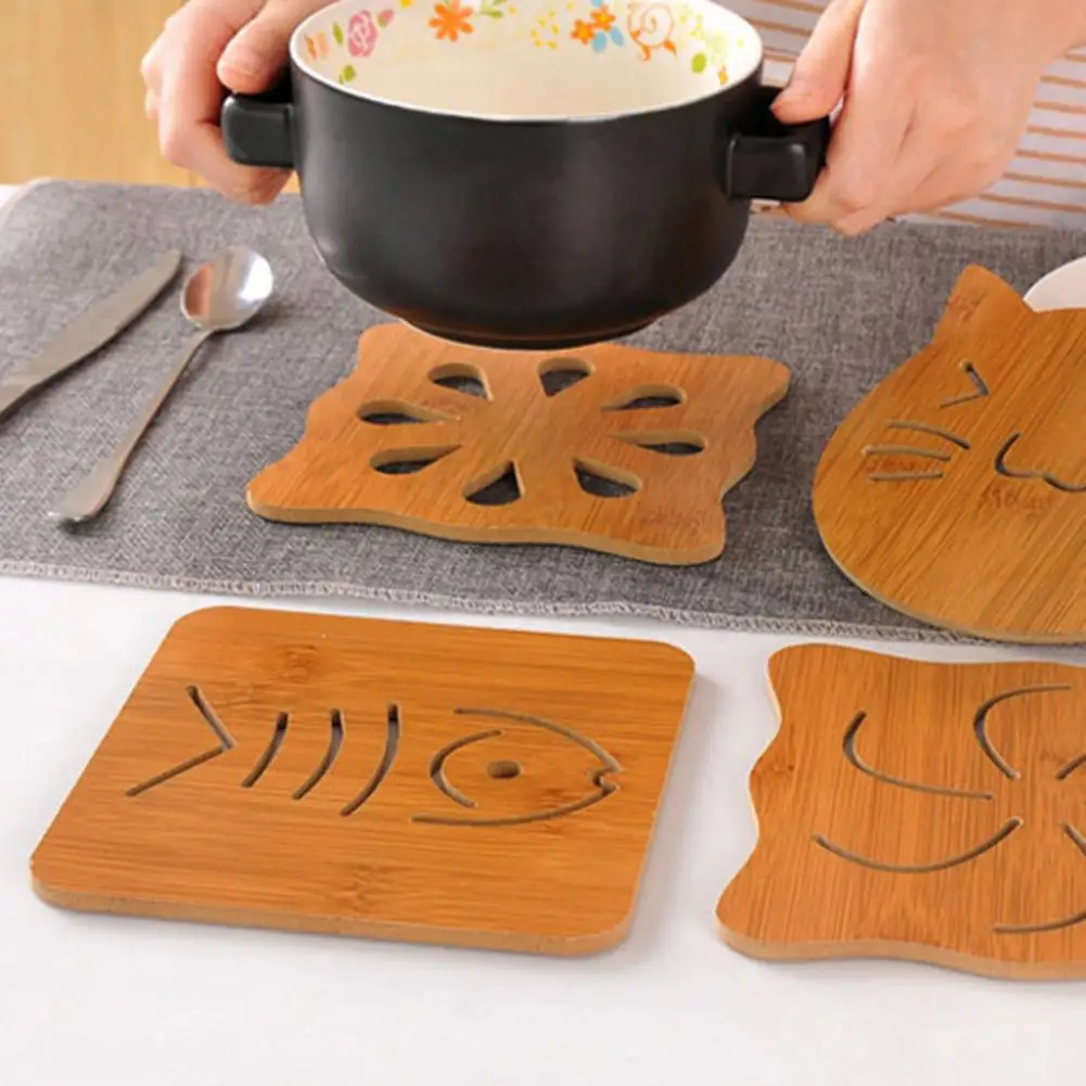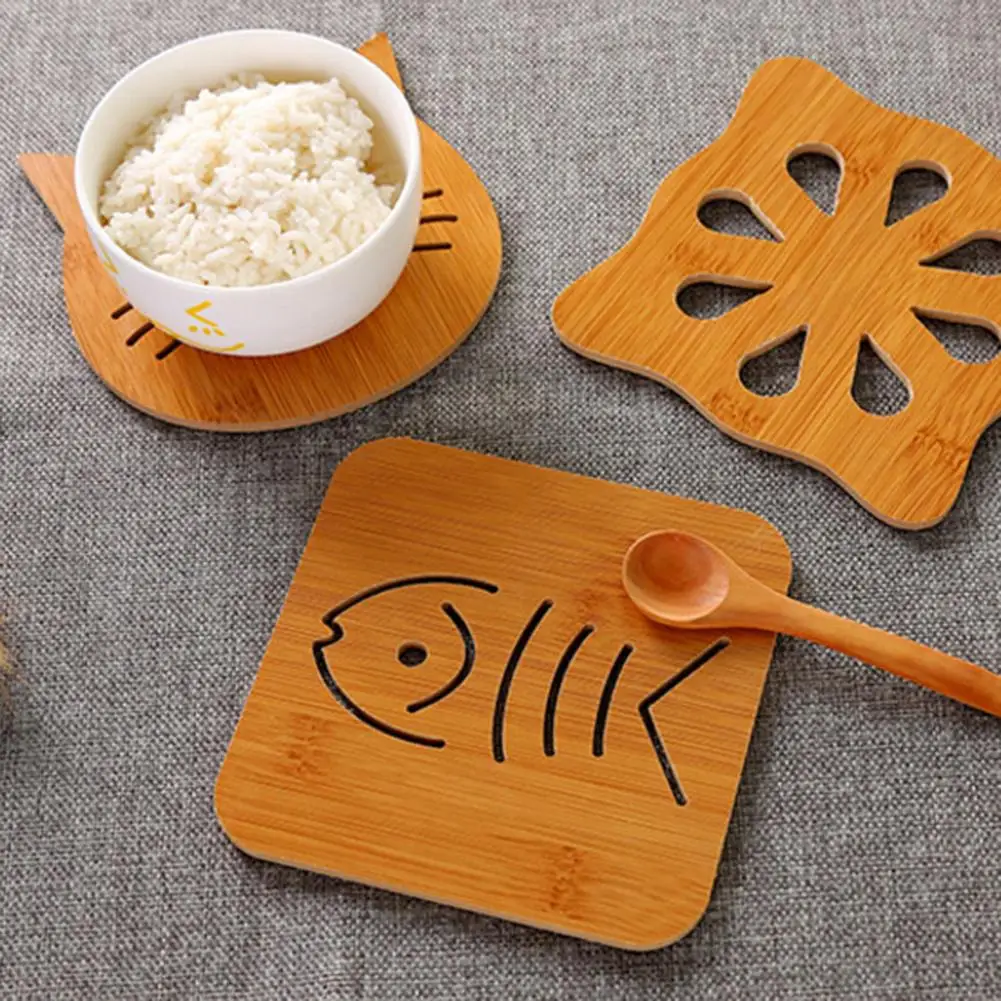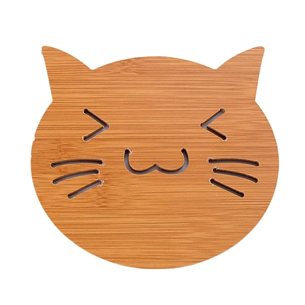 Бамбук полый кошки Совы Форма термостойкий Коврик для чашки держатель подставки для кружек Кухня поставляет горшок чашка коврик для кухни, принадлежности Кухня аксессуары