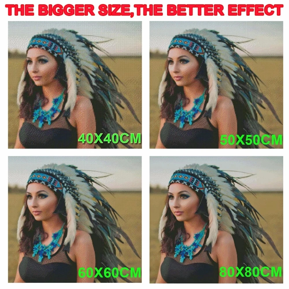 Чем больше размер, тем лучше эффект! Каждый размер алмаза: 2.5x2.5мм. Если изображение сложное, маленький размер будет не очень хорошим! Если вам нужен большой размер любых фотографий, пожалуйста, свяжитесь с нами!