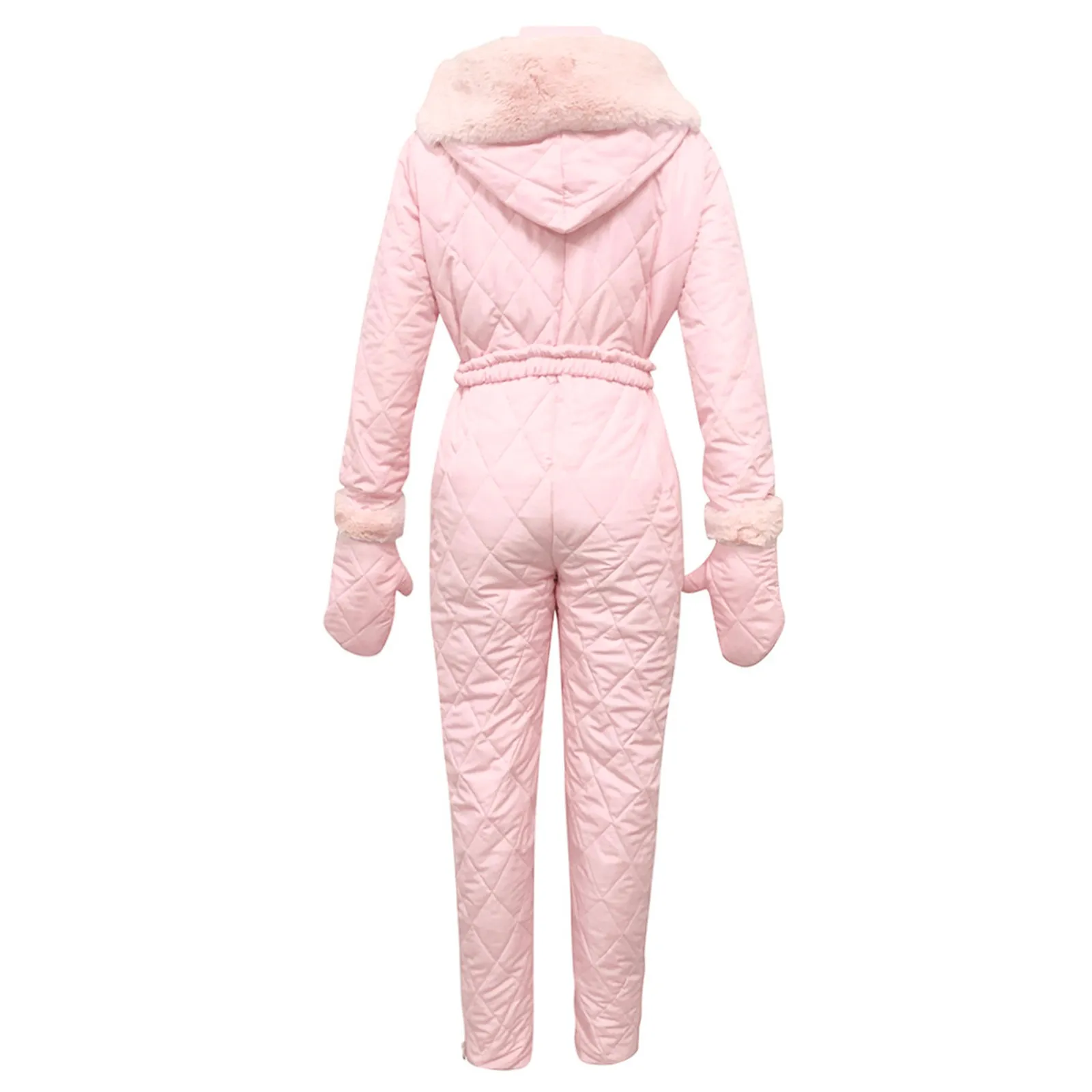 Женский лыжный комбинезон с перчатками, зимний модный повседневный ...