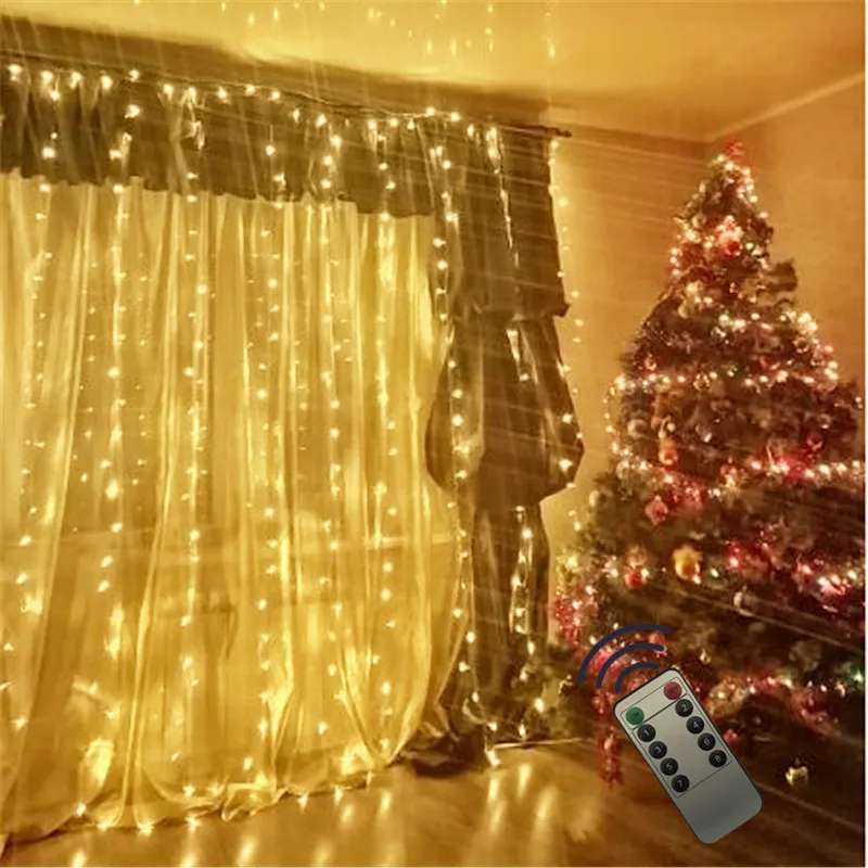 Новогодняя светодиодная гирлянда с дистанционным управлением, медный провод, занавеска, сказочный светильник, 2 х2 м, украшение для дома, окна, спальни, свадьбы, вечеринки, лампы с питанием от USB