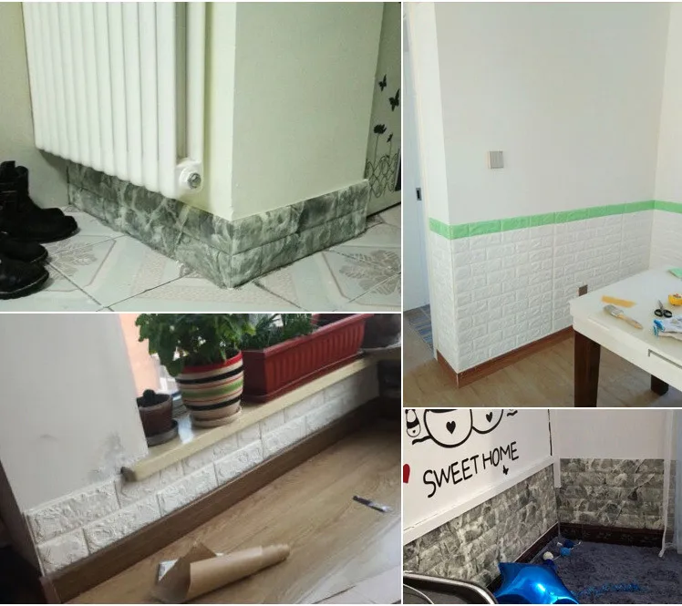 Самоклеящиеся настенные Стикеры, водонепроницаемые 3D наклейки с обои для плинтуса краями из пены и кирпича, украшение для гостиной, спальни, дома