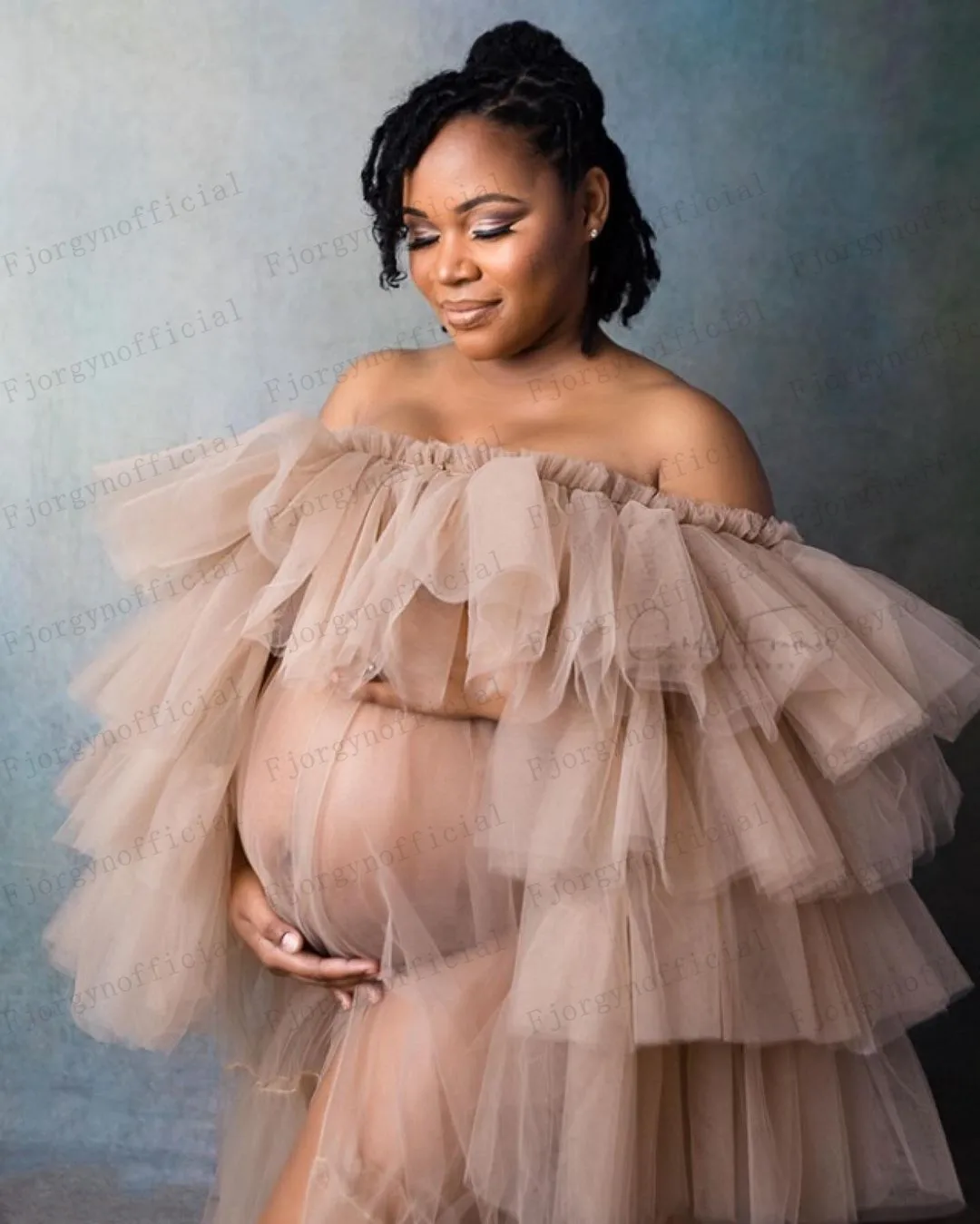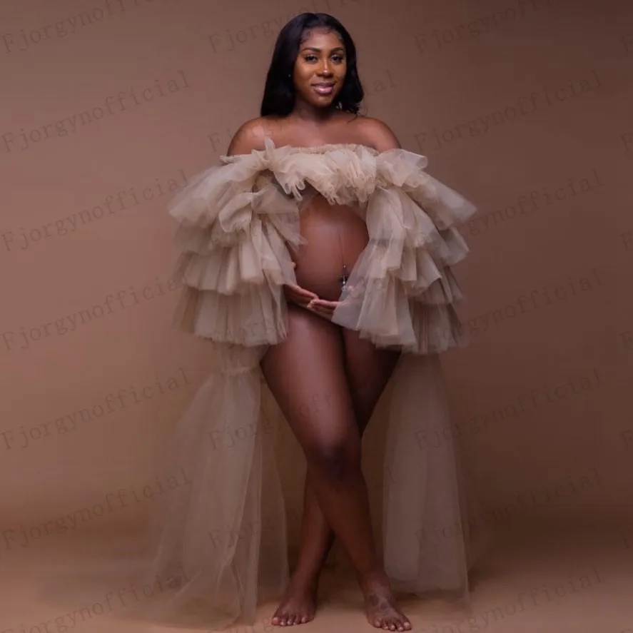 Haute Couture платье для беременных для фотосессии с открытыми плеч...