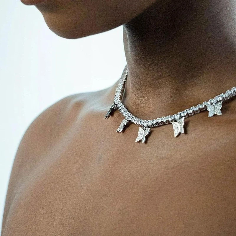 Кубинская Бабочка ожерелье стразы бабочка кулон ожерелье Хип-хоп ак...