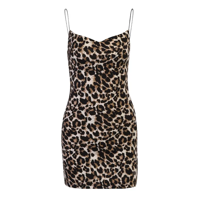 WannaThis Сексуальное Женское Платье на тонких бретелях с леопардовым принтом без рукавов эстетическое костюм Bodycon Элегантные Вечерние Повседневные платья 2021