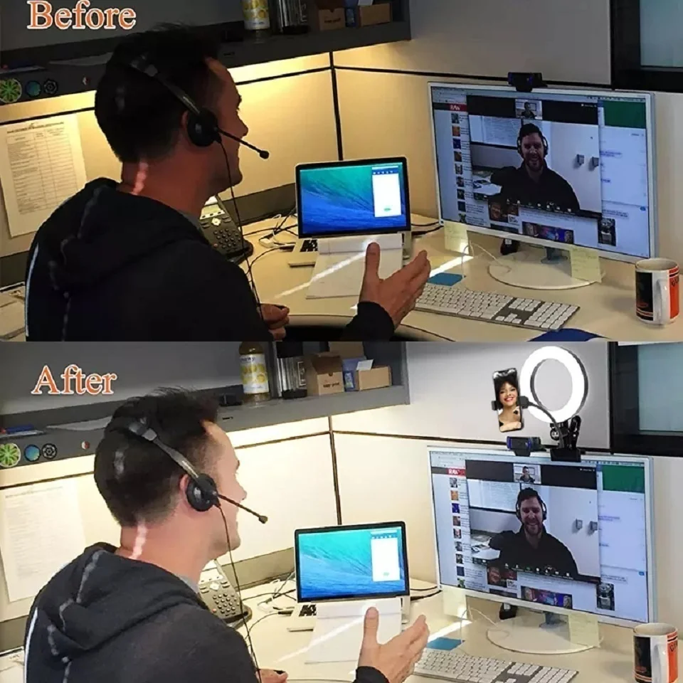 da bastante luz. la utilizo para las videoconferencias en el trabajo por la iluminación de la habitación. el soporte para el móvil no es muy bueno. se ha salido la varilla y no llega a sujetarse.