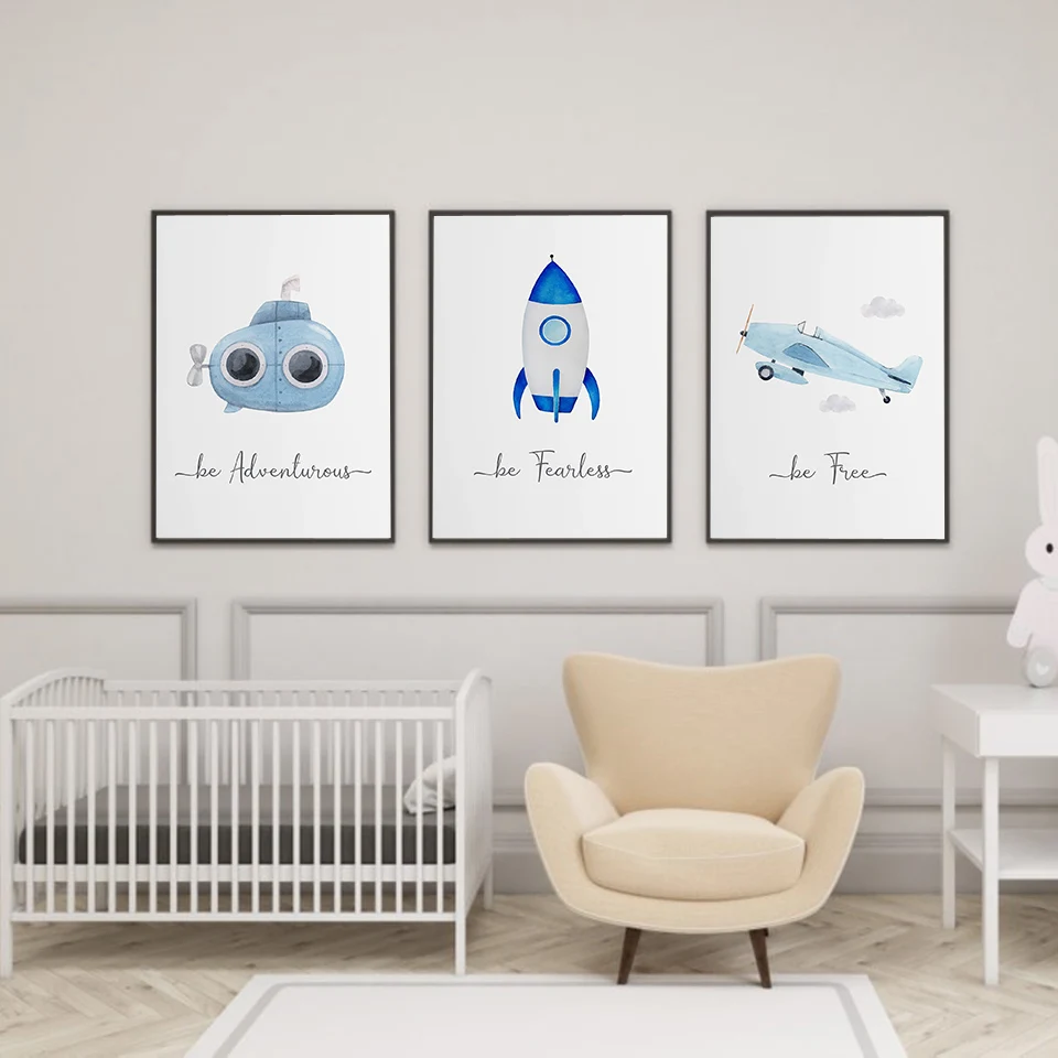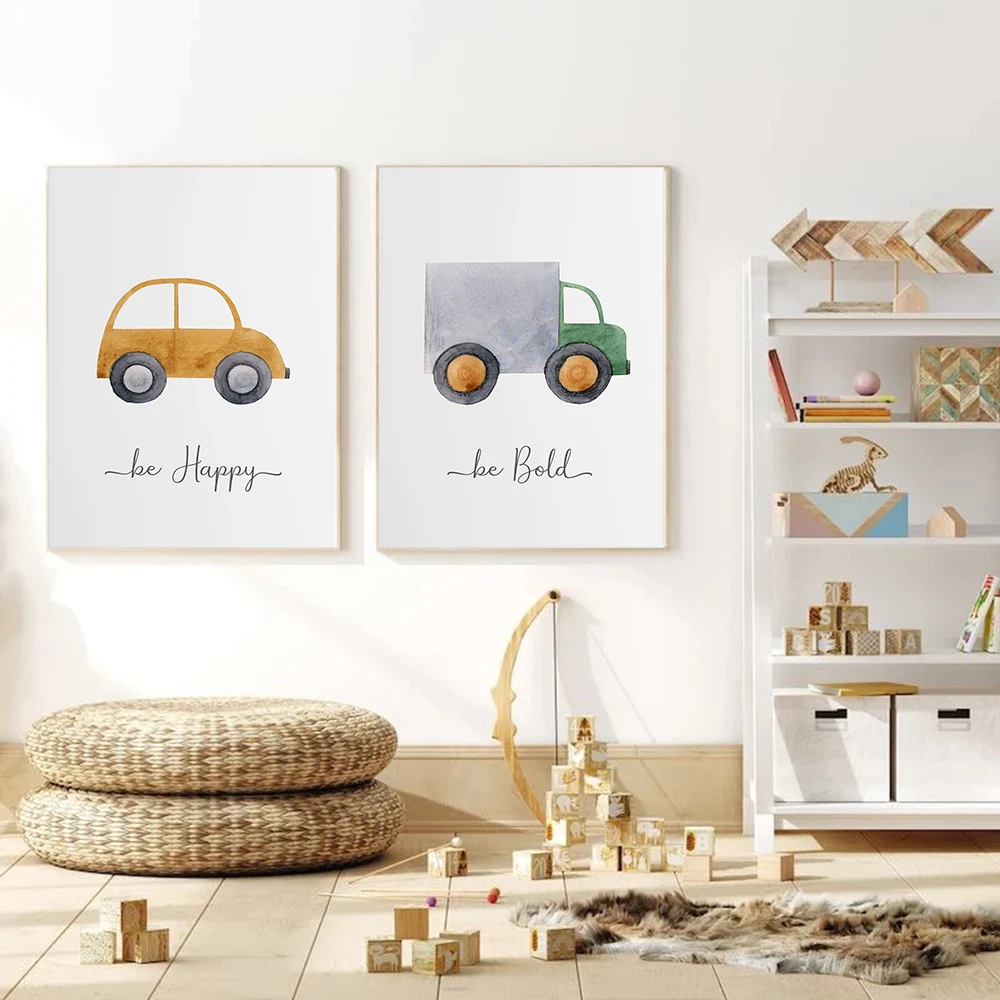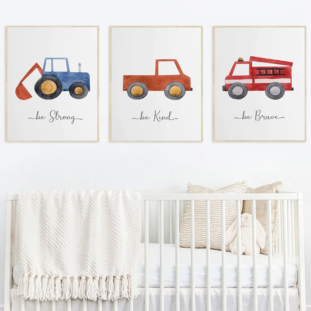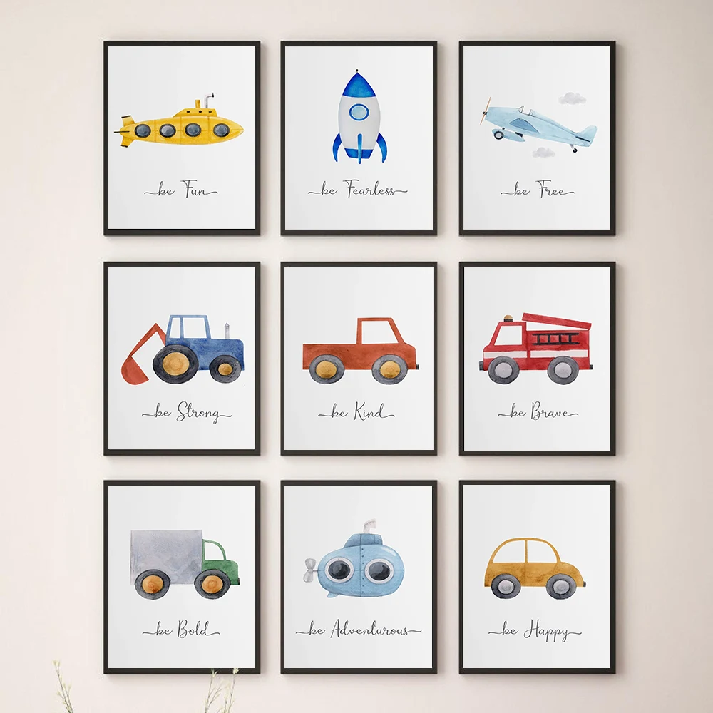 Мультяшная техника автомобиль самолёт декоративная картина плакат быть храбрым быть сильным детский сад холст живопись стена искусство мальчик комната