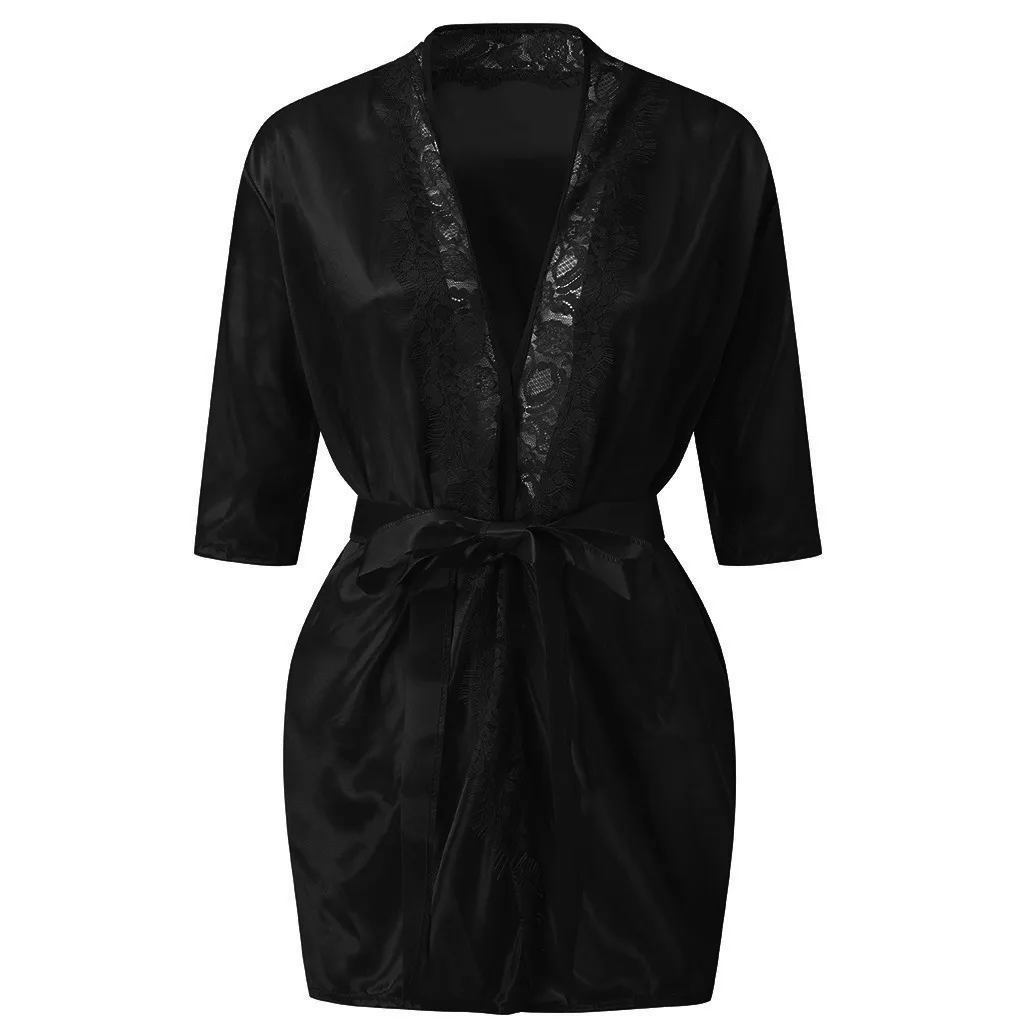 Модная женская осенняя Повседневная однотонная кружевная комбинированная Пижама с рукавом в девять минут