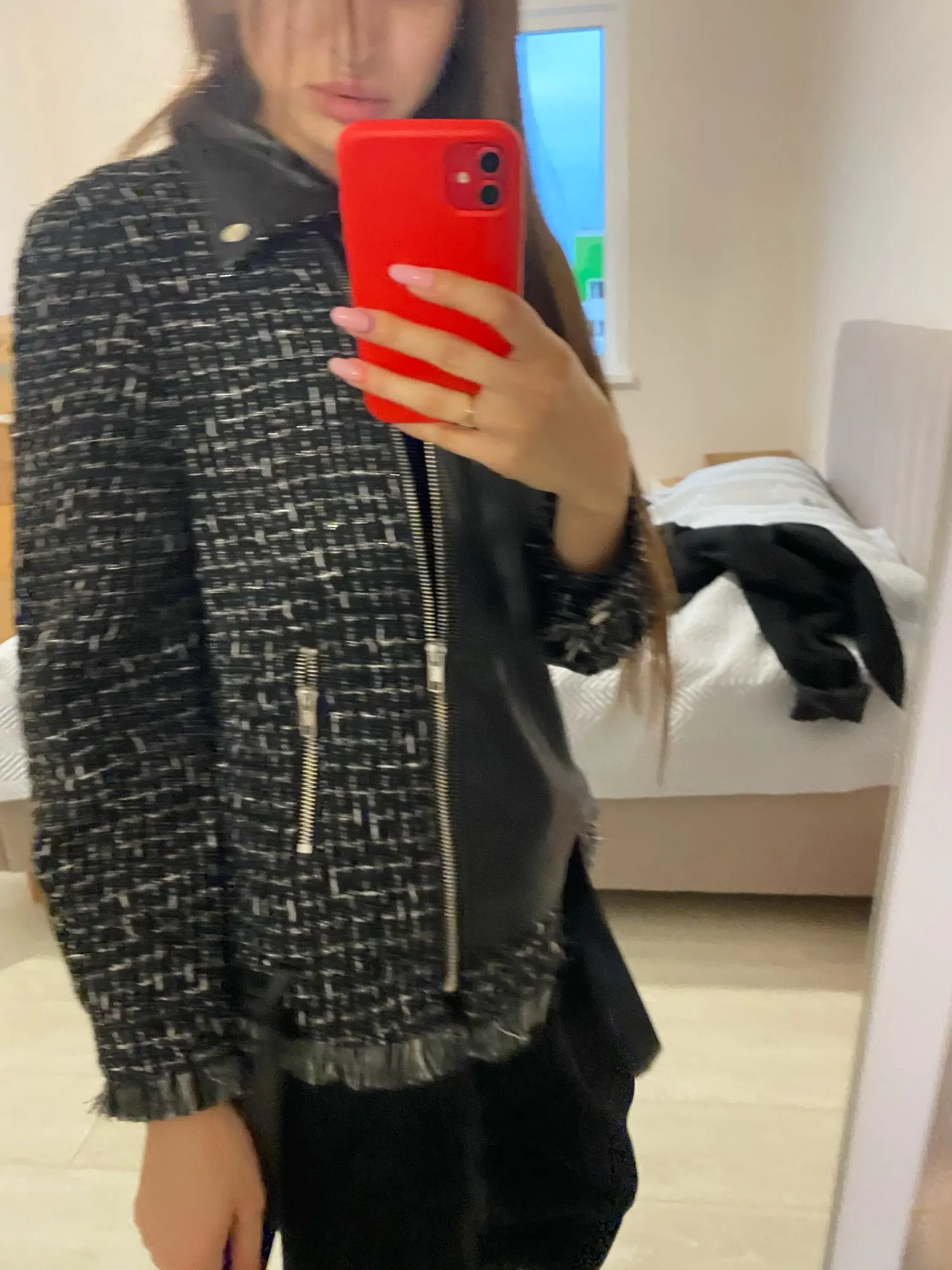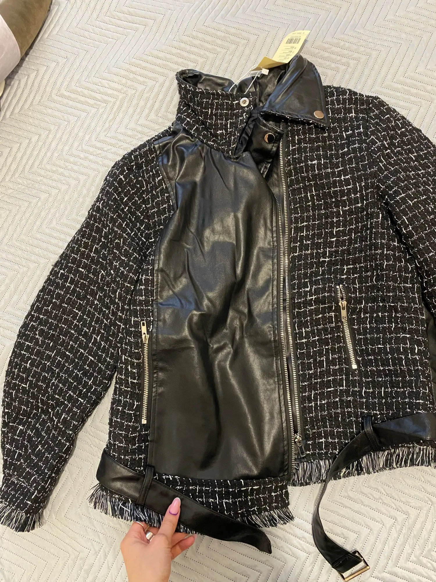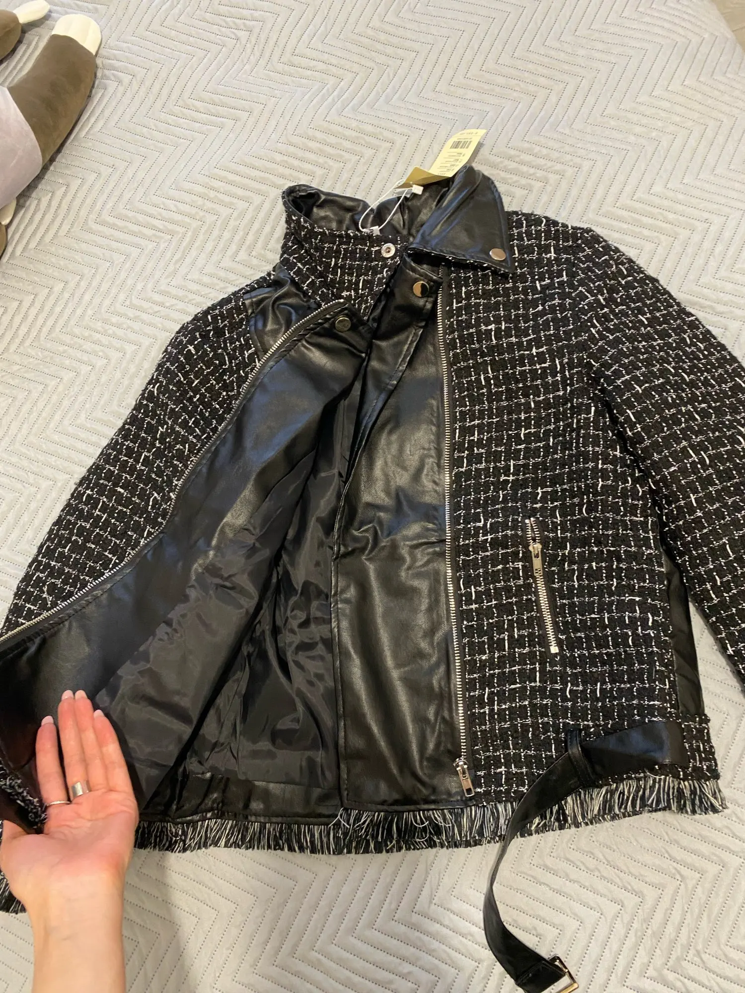 Легкая куртка. Прибыл сильно сдавливается на ПУ кожу... я надеюсь, что она выпрямится. Небольшой размер.