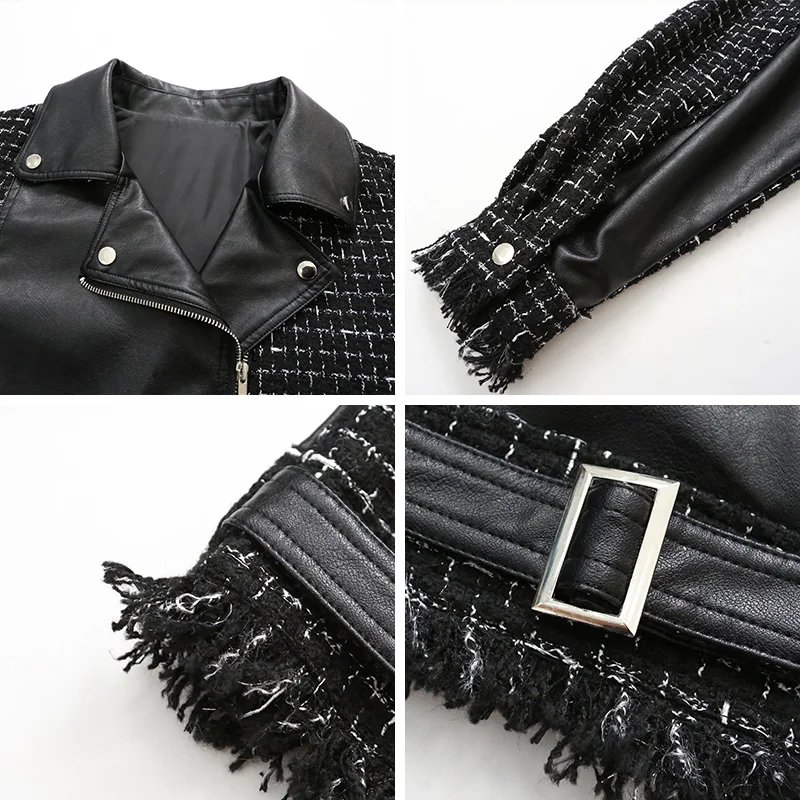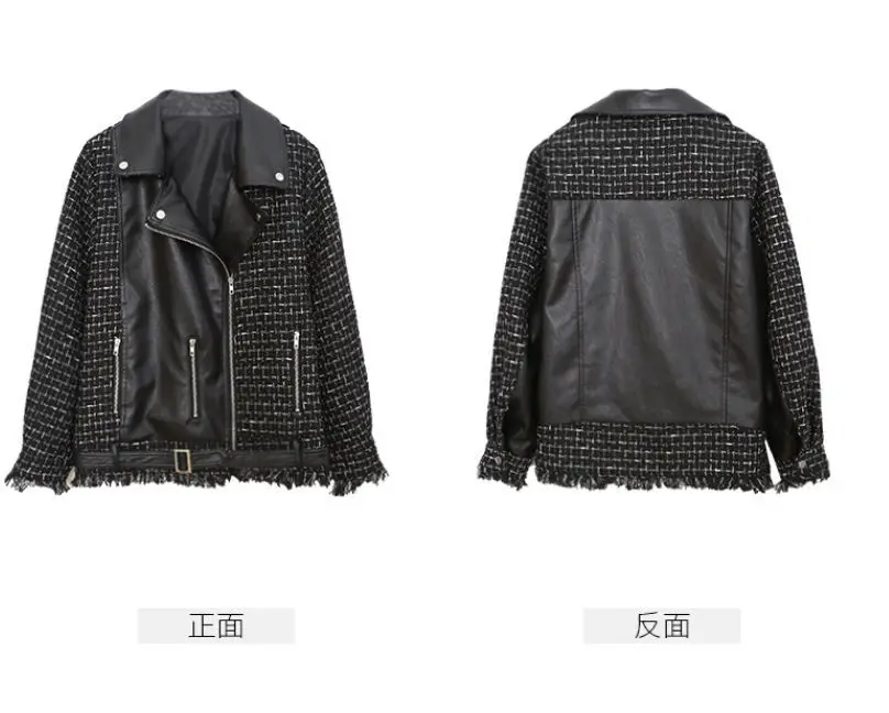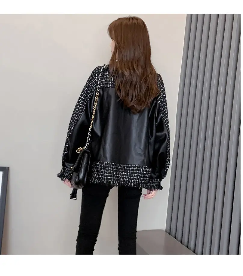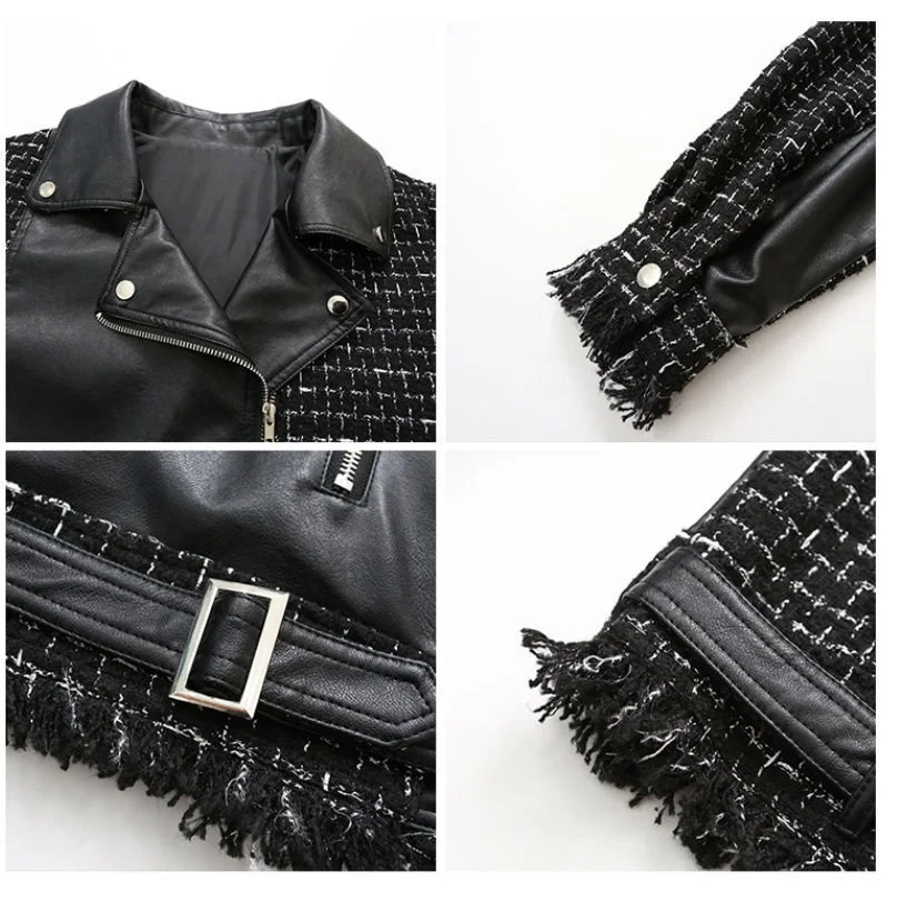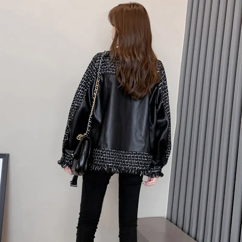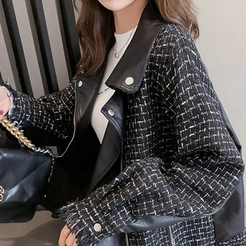 Куртка женская твидовая, из искусственной кожи, в клетку, в стиле пэчворк, весенняя, 2020