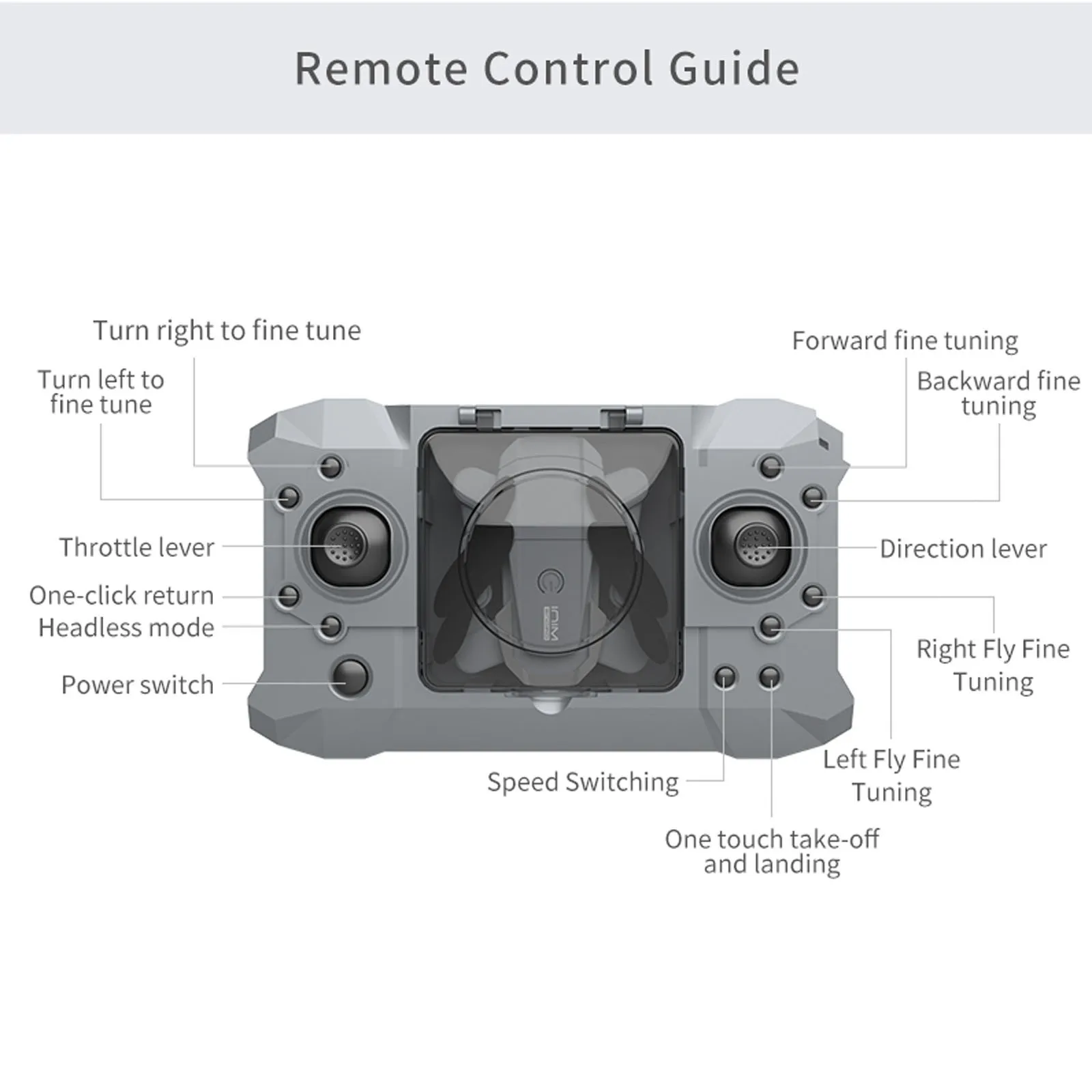 Вверх/вниз, вперед/назад, поворот влево/вправо, боковой полет, светодиодные фонари, Безголовый режим, автоматический возврат одной кнопкой, режим удержания высоты, Wi-Fi FPV. Визуальное позиционирование. Переключение камеры.