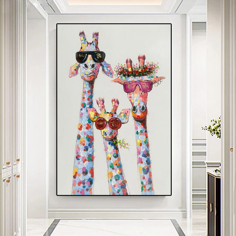 Жираф семья с очками картины маслом Печать на холсте художественные...