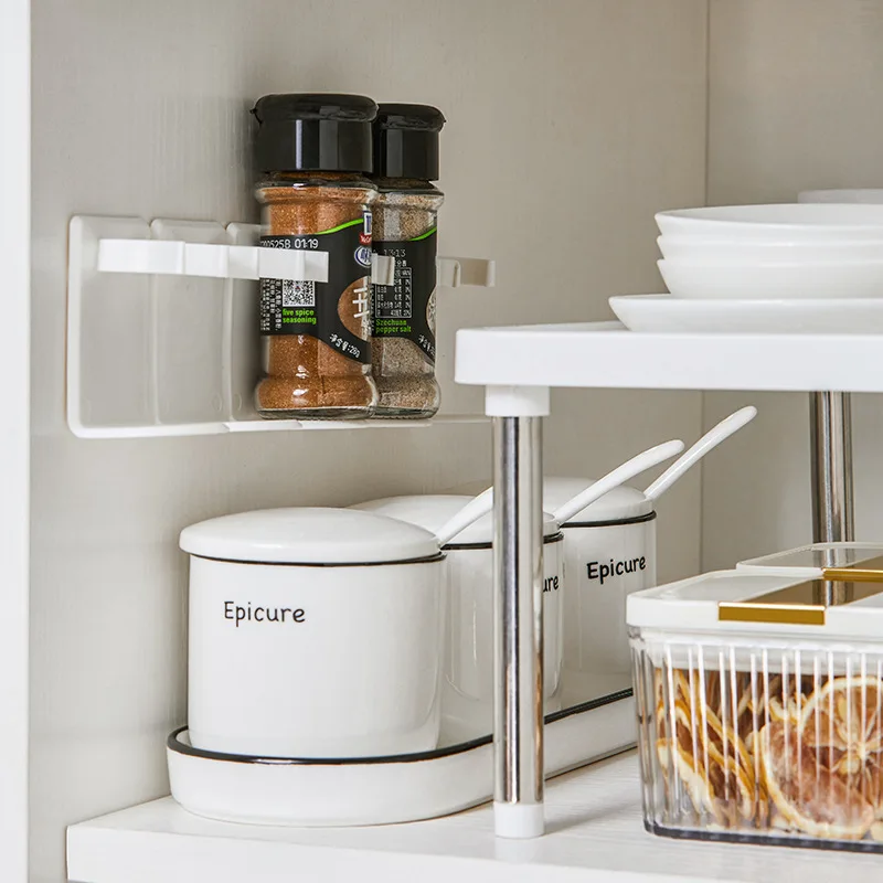 1 шт. кухонный стеллаж для хранения, настенное крепление, полка для бутылок с специями, пластиковый зажим, стеллаж, крючки для дверей шкафов, банок, держатель для специй, инструменты