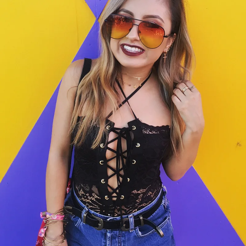 Цельное боди с глубоким V-образным вырезом на шнуровке, женское пор...