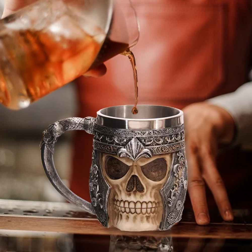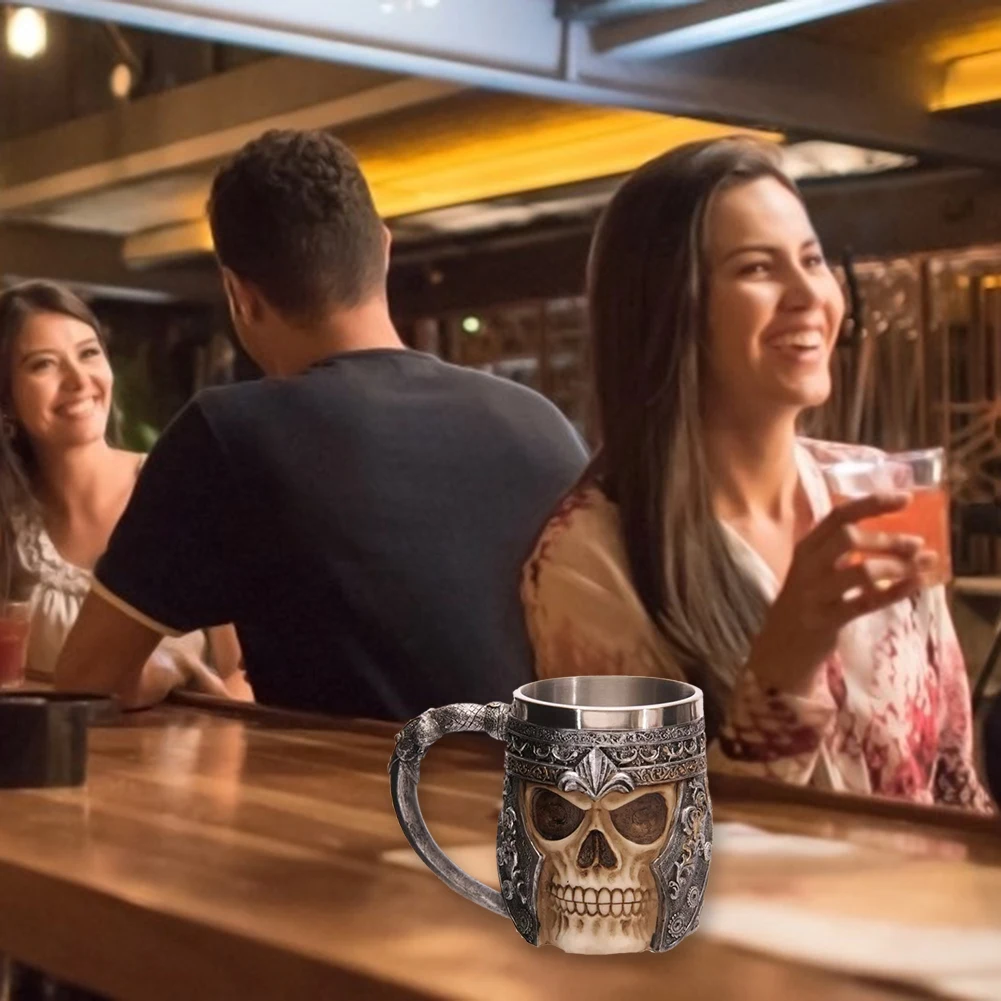 Череп Рыцарь Хэллоуин фестиваль Атмосфера для чая, кофе, пива креативная кружка викинга ретро из смолы нержавеющей стали для паба бара офиса украшения