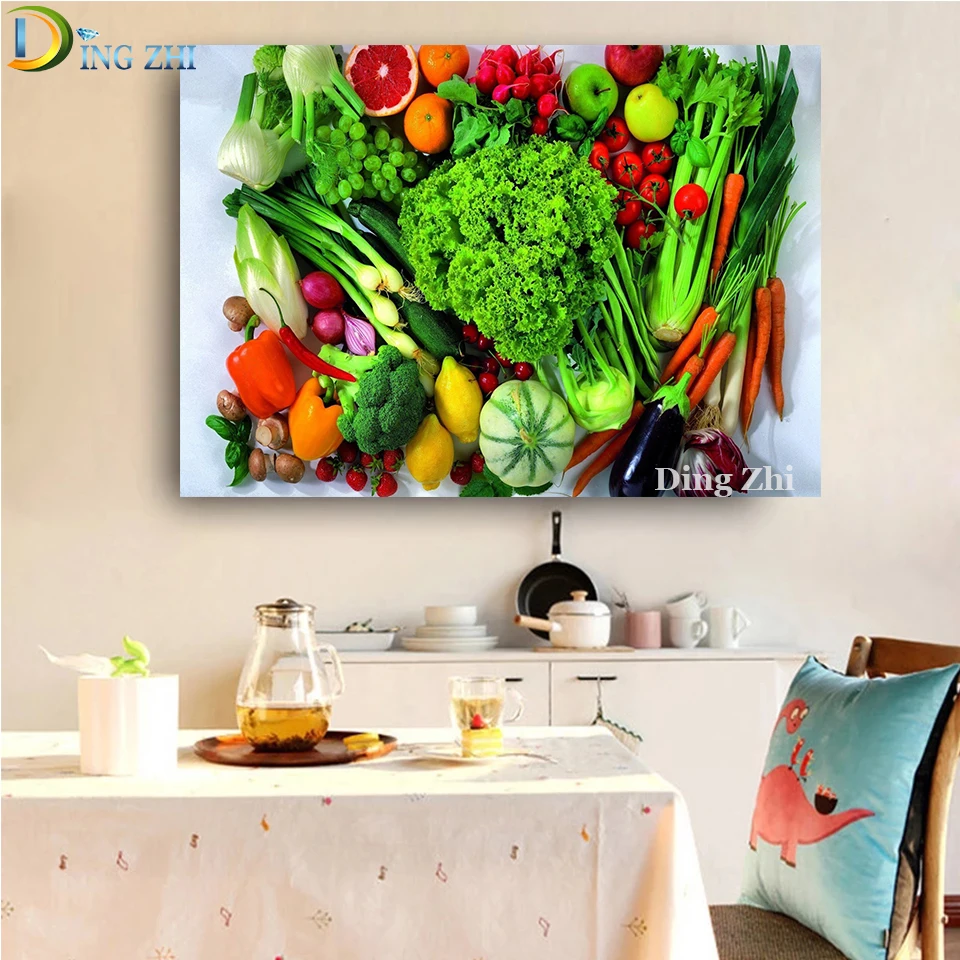 5D алмазная вышивка крестиком, картина из различных овощей и фруктов, иллюстрация «сделай сам», мозаика, полная квадратная круглая дрель, Декор