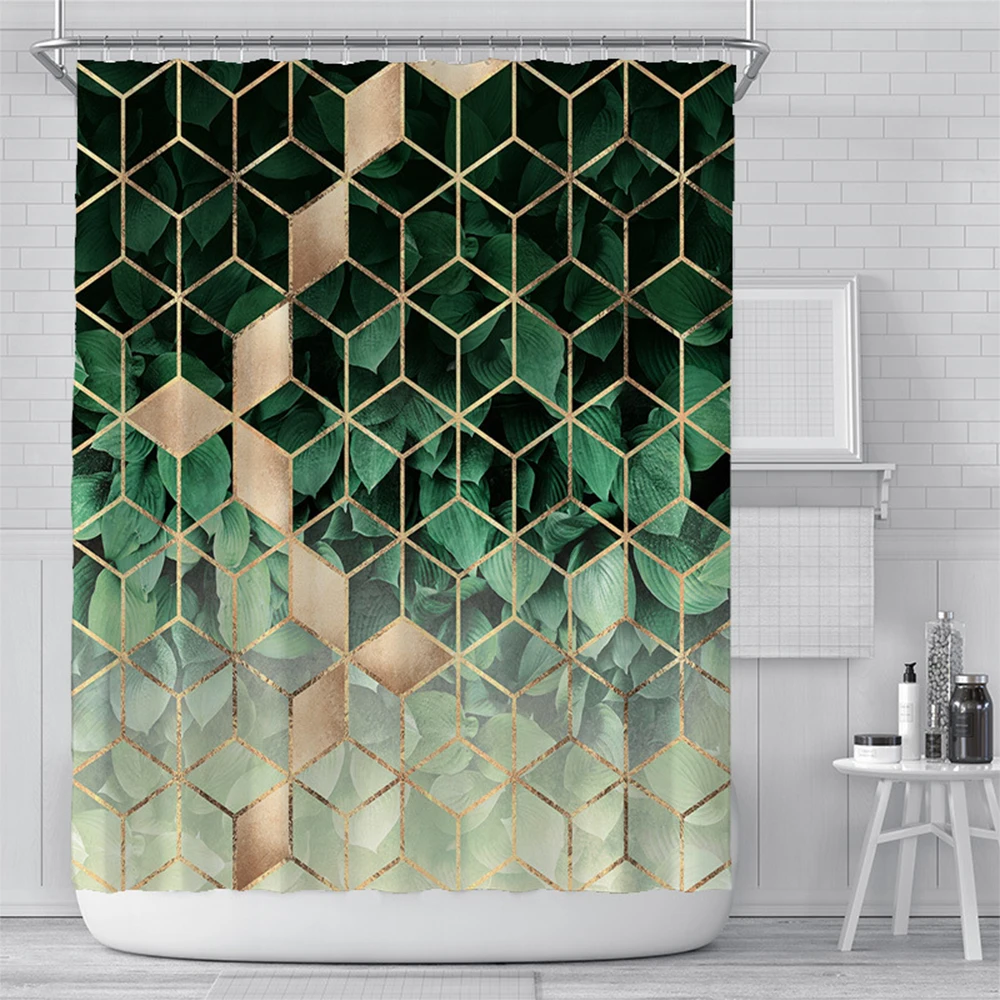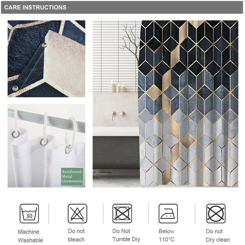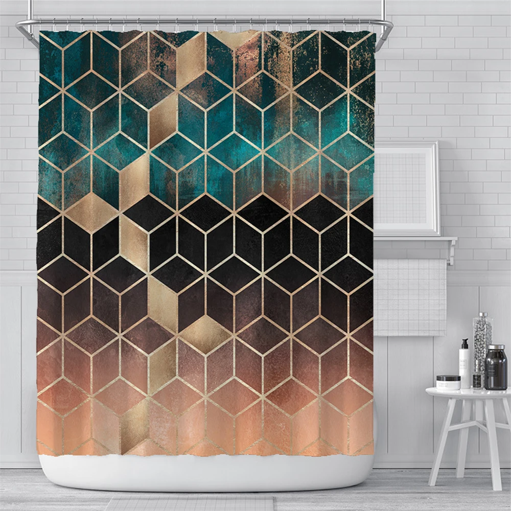 Занавеска для душа из полиэстера, водонепроницаемая, с геометрическим принтом, с крючком, 3D мраморный узор, шестигранники