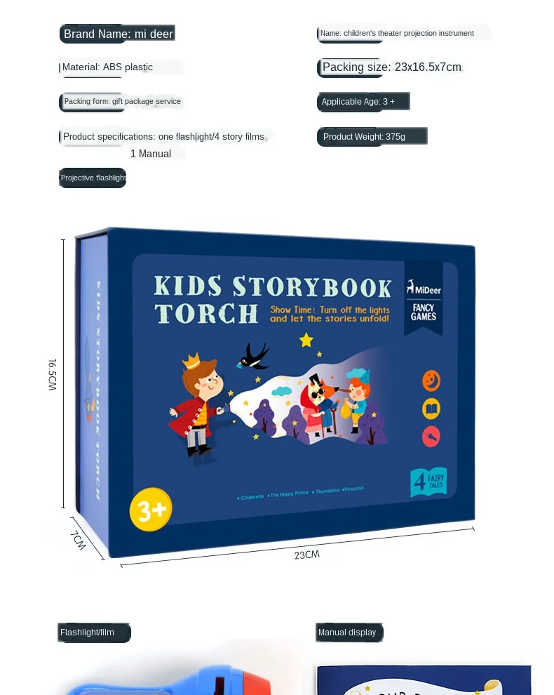 Портативный проектор с фонарисветильник, игрушка, книга сказок, дет...