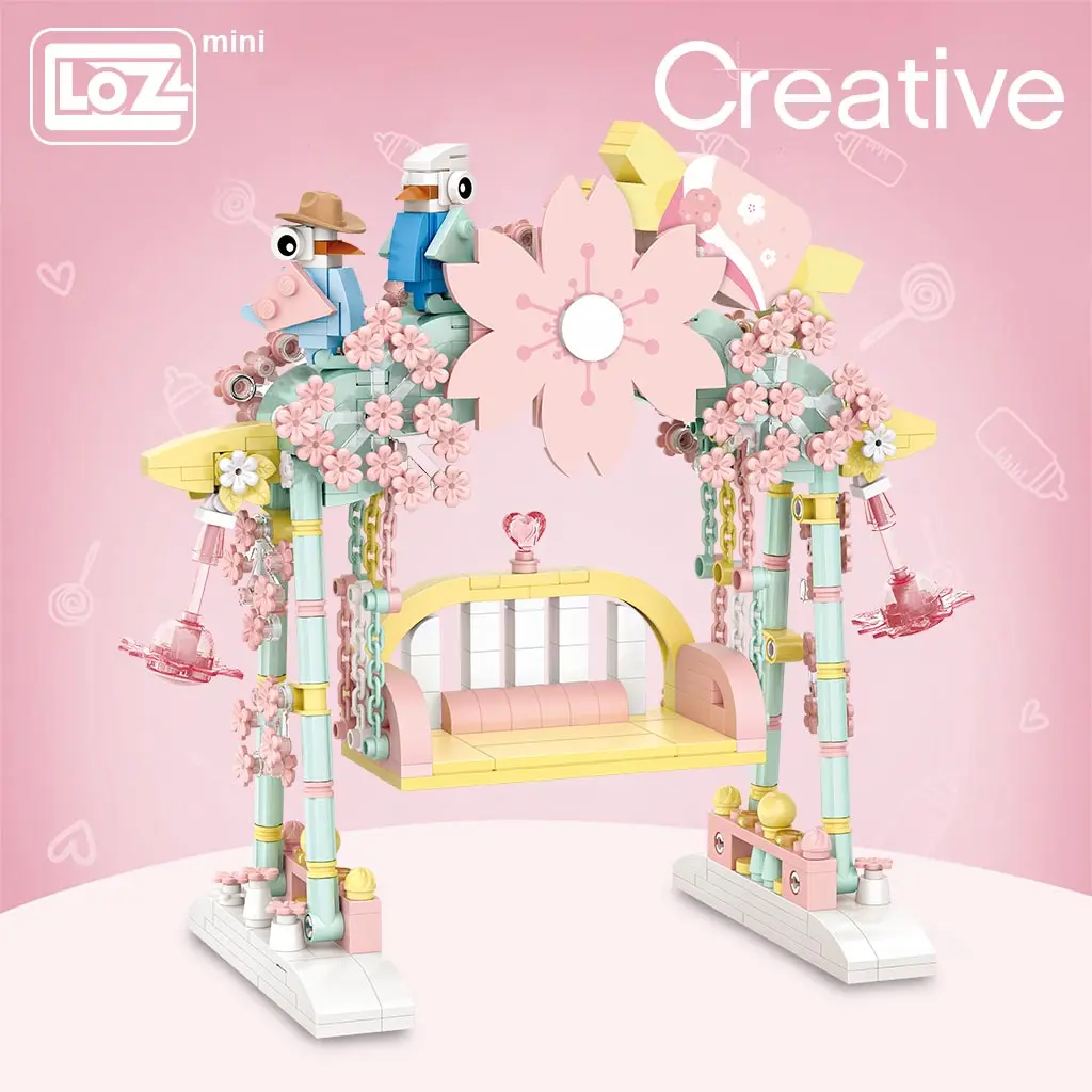 Мини-конструктор LOZ, конструктор в виде трансформера, Розовая модель автомобиля