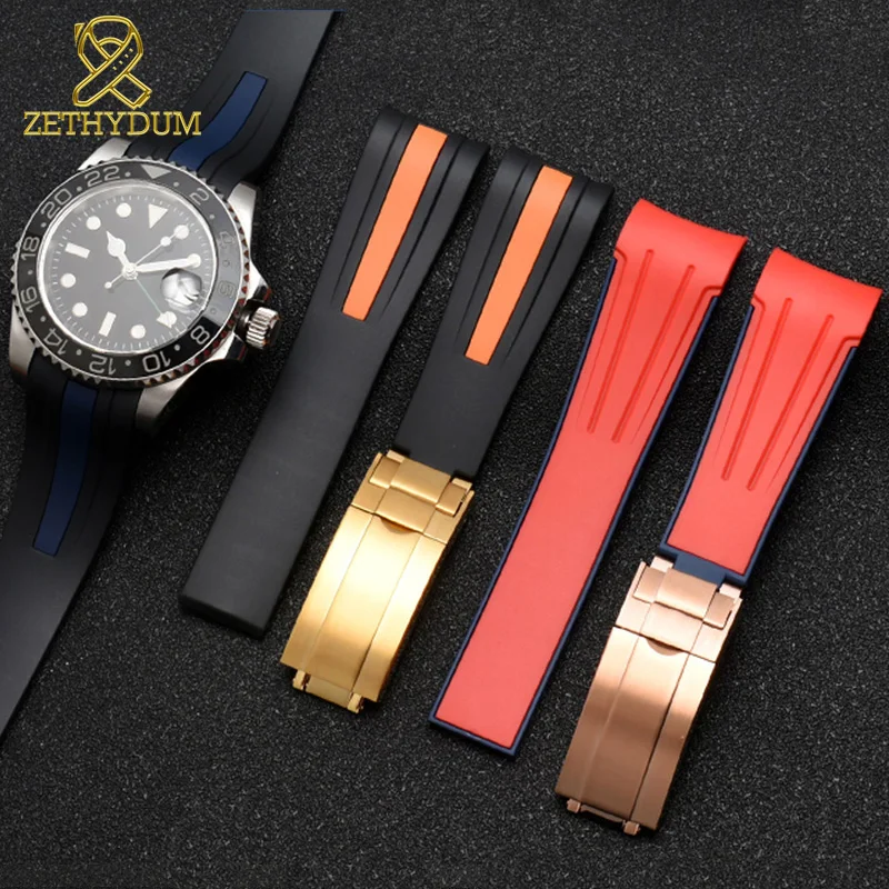 Высококачественный силиконовый резиновый браслет 20 мм 22 мм, ремешок для часов, два цвета, спортивные часы, ремешок с кривым концом, ремешок, черный $29