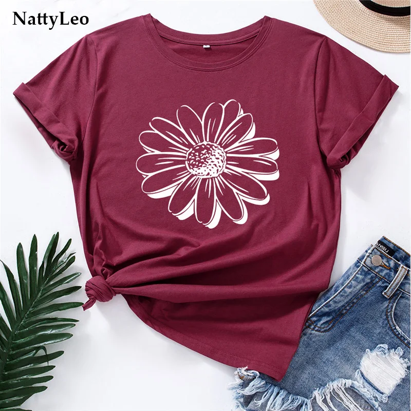 Футболка женская оверсайз из 100% хлопка, с цветочным принтом