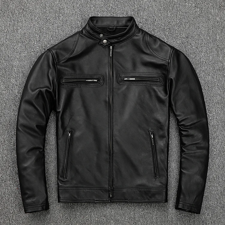 Мягкая мужская куртка большого размера ree, оптовая продажа, облегающее пальто из натуральной кожи, Байкерская кожаная одежда, осень