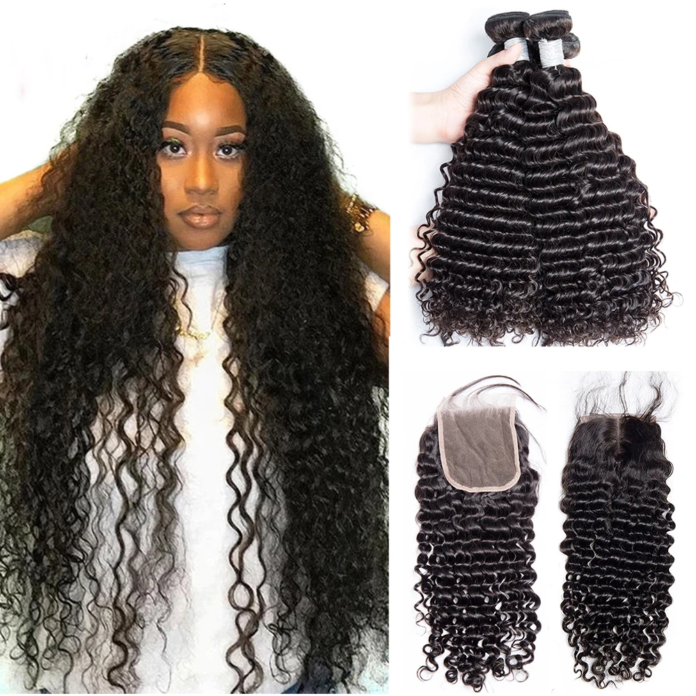 Hair TextureDeep Wave Human Hair bundles with Closure