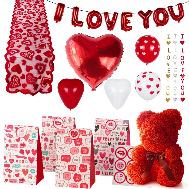 Латексный воздушный шар в форме сердца, роза, медведь, День Святого...