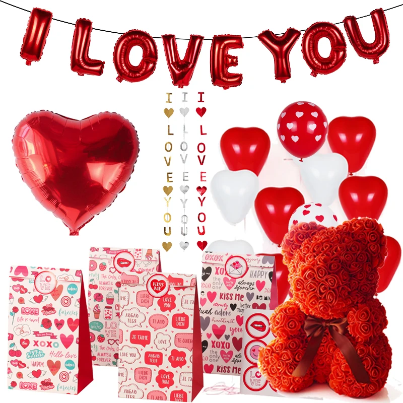 День Святого Валентина любовь в форме сердца латексный воздушный шар висячая Роза медведь подарок декор для свадьбы и Помолвки розовый Подарочный пакет невесты